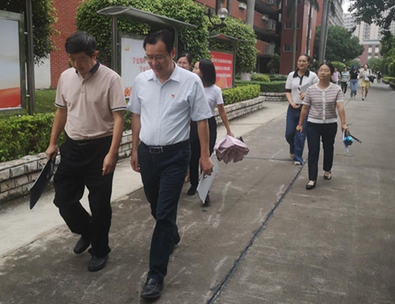 为进一步落实习近平总书记关于加强高校思想政治理论课教育教学工作的指示精神,提高教学质量和教研能力,把习近平新时代的育人思想运用到整个思政课教学之中,推动马克思主义学院高质量发展,10月18日下午,校长易健民教授率教学督导办主任唐辉、教务处副处长曾英姿、学校办公室副主任任志勇等一行,到马克思主义学院现场办公。马克思主义学院院长廖良初以及全体思政课教师参加。易健民校长一行首先到西二栋203教室听取了龙林老师的公开课,到马克思主义学院各教研室了解思政课教研教改情况后,来到马克思主义学院518会议室就如何深化课堂教学改革,提高教学质量进行现场办公。