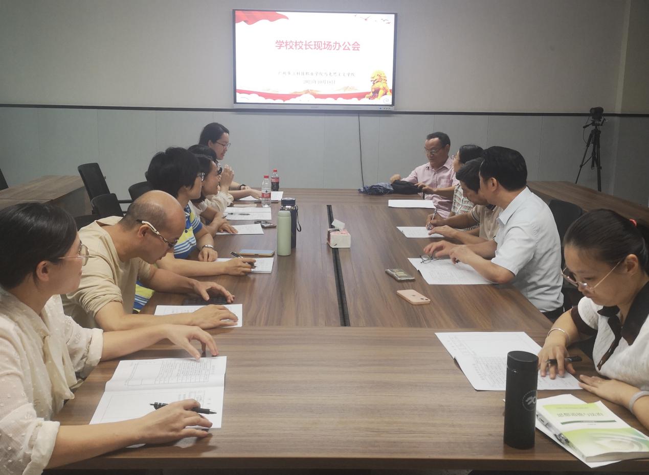 现场办公会上,易健民校长首先提出马克思主义学院责任重大,使命光荣。他认为,马克思主义学院承载着立德树人的重要使命,承担着学校思政课的教学任务,是开展马克思主义理论教育和思想政治教育的主渠道、主阵地。他对马克思主义学院在近期教学改革中取得的成绩表示肯定。同时,对龙林老师的公开课表示高度赞扬。他认为龙林老师的文化历史底蕴深厚,将中华优秀传统文化渗透到课堂以文化人,将学生三下乡实践活动融入课堂立德树人,做得很好。接着,易校长向老师们亲切询问学院建设方面存在的困难和问题。他强调,学校将全力支持马克思主义学院教学改革、教师队伍建设、强化经费保障,推动新时代马克思主义学院高质量发展。