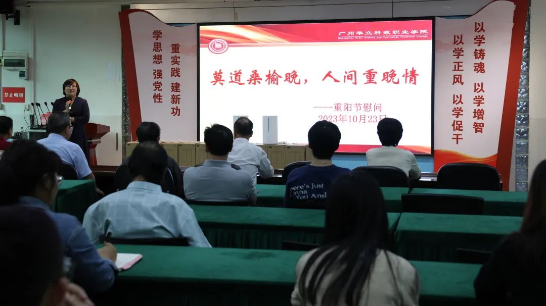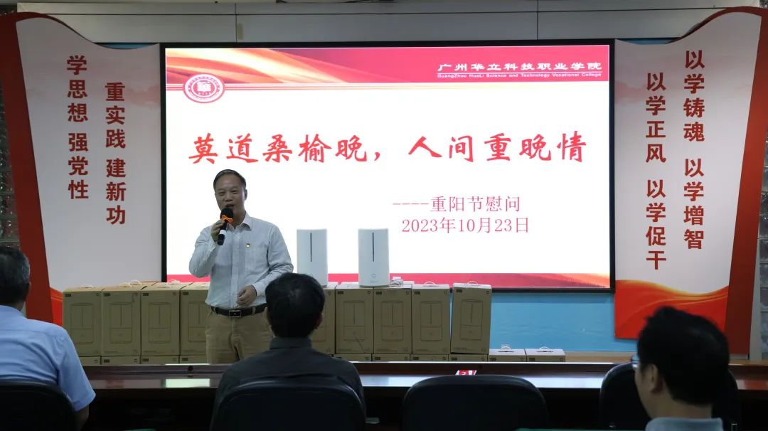 党委书记陈良声同志做慰问致辞,他表示老教师们是华立教育事业发展的重要力量,华立职院100年名校目标仍要依靠老教师们继续发挥余热,积极支持学校工作,为学校的发展建言献策,共筑学校新辉煌。