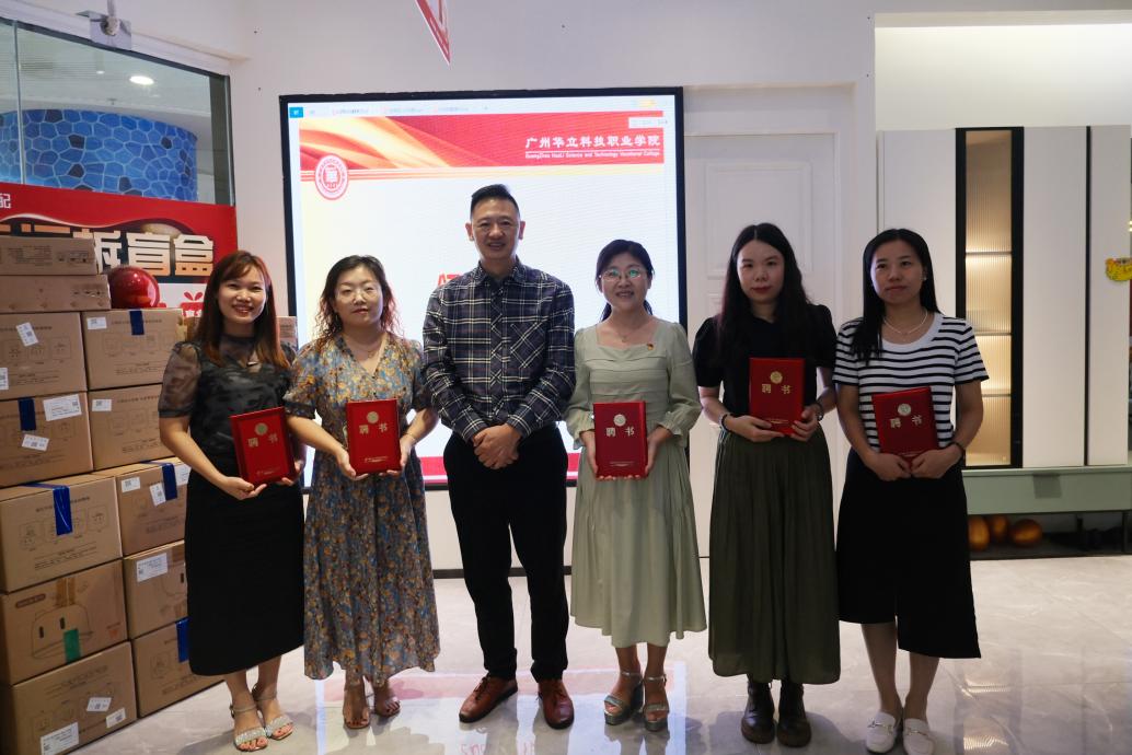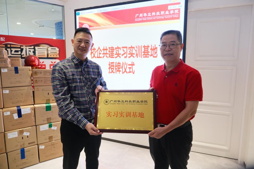 为提升艺传学院校外教学效果,深化“产教融合、校企合作”人才培养内涵,11月1日下午, 广州华立科技职业学院副校长陈显强、教务处副处长陈茜、产教融合办副主任韦建林、艺传学院党总支书记副院长陈改梅、副院长王焰安、教科研办主任邢雅丹、教师马英超、朱芸等前往广州宅吉美装饰工程有限公司荔城万达店签订合作协议并举行“实习实训基地”挂牌仪式。