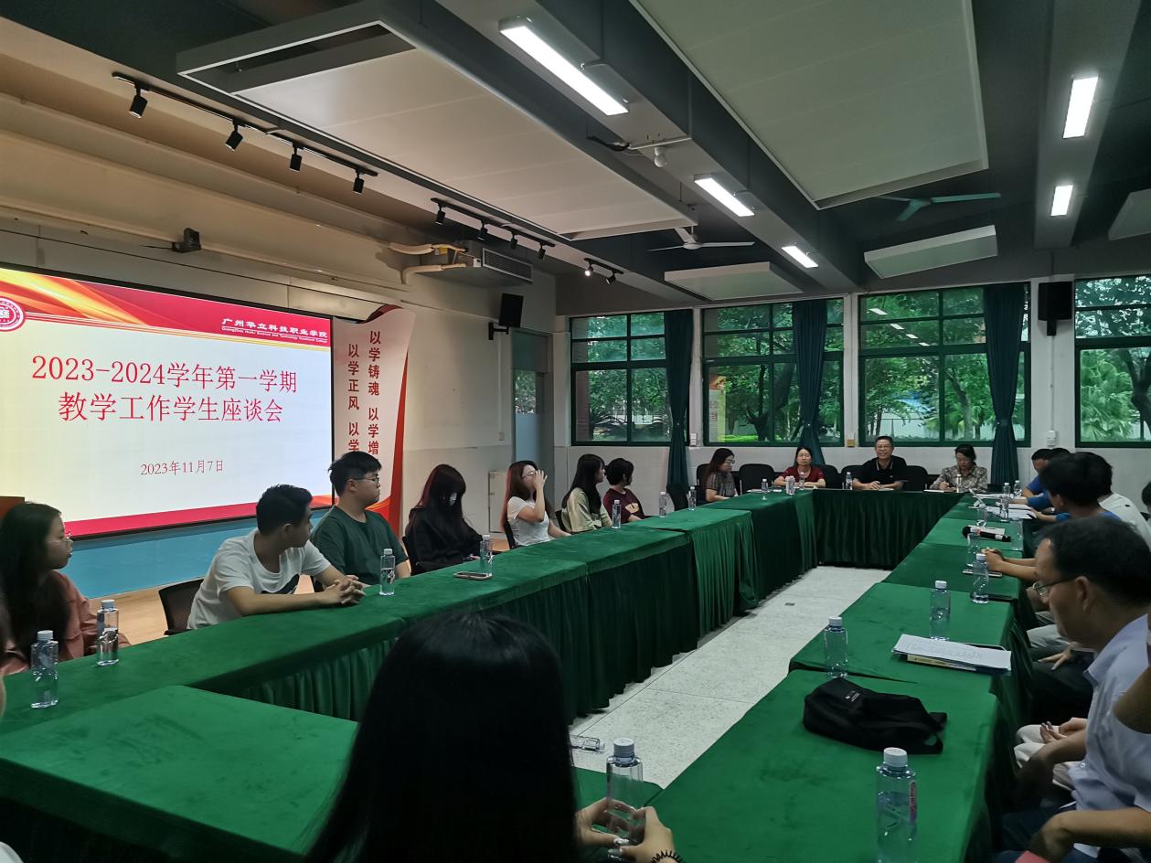 为加强教学秩序管理,保证教学质量,根据《关于开展2023-2024学年第一学期期中教学检查的通知》的安排,教务处于11月7日下午分别在广州校区、云浮校区召开学生座谈会。副校长陈显强、校长助理张剑锋、教务处处长吴青峰、实训中心主任张磊、教务处副处长胡仁火、副处长曾英姿、陈茜及教学管理人员与各二级学院学生代表参加座谈会。