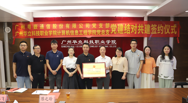 2023年11月8日,广州华立科技职业学院计算机信息工程学院党总支与广州粤嵌通信科技股份有限公司党支部校企党建结对共建授牌仪式在广州华立科技职业学院行政楼305举行。粤嵌公司总经理兼党支部组织委员李春飞、总经理助理兼宣传委员陈之玲、校企合作经理钟志城一行到场参会,我校党委书记陈良声、党委办公室主任刘宇赤、计算机信息工程学院党总支书记闵小翠以及党总支委员会朱志豪、黄志强等有关同志出席了本次会议。