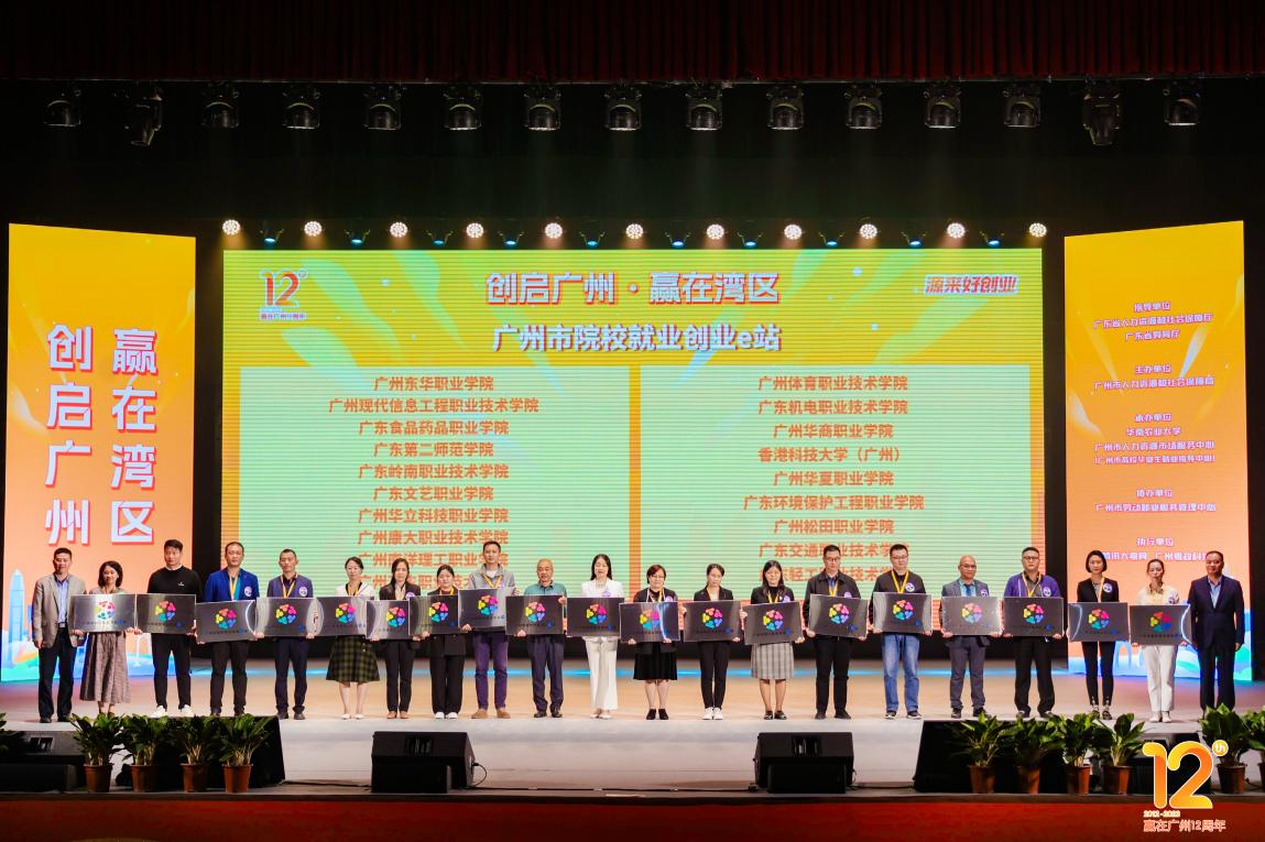 2023年12月15日下午,由广州市人力资源和社会保障局主办的2023年第十二届“赢在广州”暨粤港澳大湾区大学生创业大赛决赛暨颁奖典礼活动在华南农业大学举行,颁奖仪式上市人社局领导为2023年新认定的19所院校颁发就业创业e站授牌。