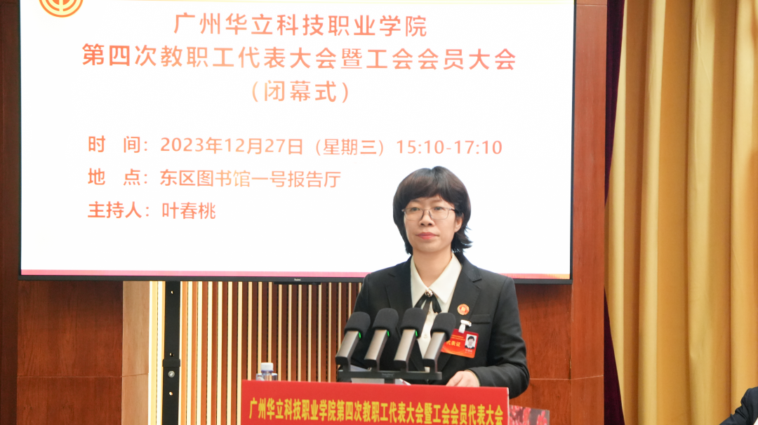 在大会中,表决通过了陈德清代表学校所做的学校工作报告、马俊代表学校第三届工会委员会所做的工会工作报告,并形成《广州华立科技职业学院第四次教职工代表大会暨工会会员代表大会决议》。会议号召,面对学校发展新形势,全体教职工要在习近平新时代中国特色社会主义思想指导下,在省教育厅和董事会的正确领导下,振奋精神、凝心聚力、苦干实干,踏踏实实教书育人、勤勤恳恳做好服务,以实际行动推动学校高质量发展,办好人民满意的高职教育,为打造国内知名、省内领先、特色鲜明的高水平高职院校努力奋斗!