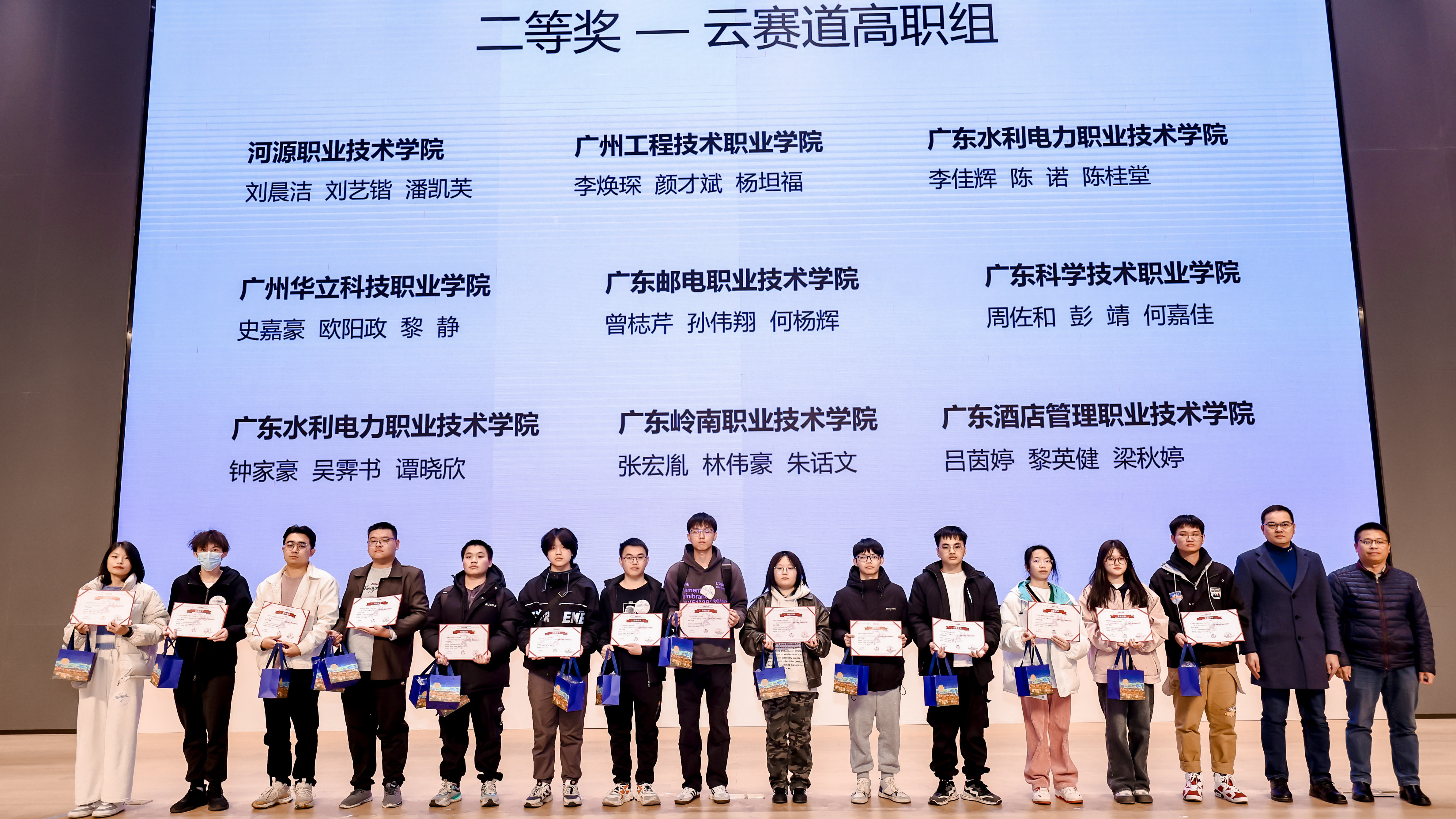 在2023年10月至12月举行的华为ICT大赛中,由我校计算机学院学生欧阳政、史嘉豪(云浮校区)、黎静(广州校区)和指导老师邓一平、黄志强组成的参赛小组获得广东省实践赛决赛云赛道高职组二等奖一项,另有2个参赛小组分别获得计算赛道和网络赛道的三等奖2项。部分获奖学生和指导老师出席了12月24日在广州举行的颁奖典礼。