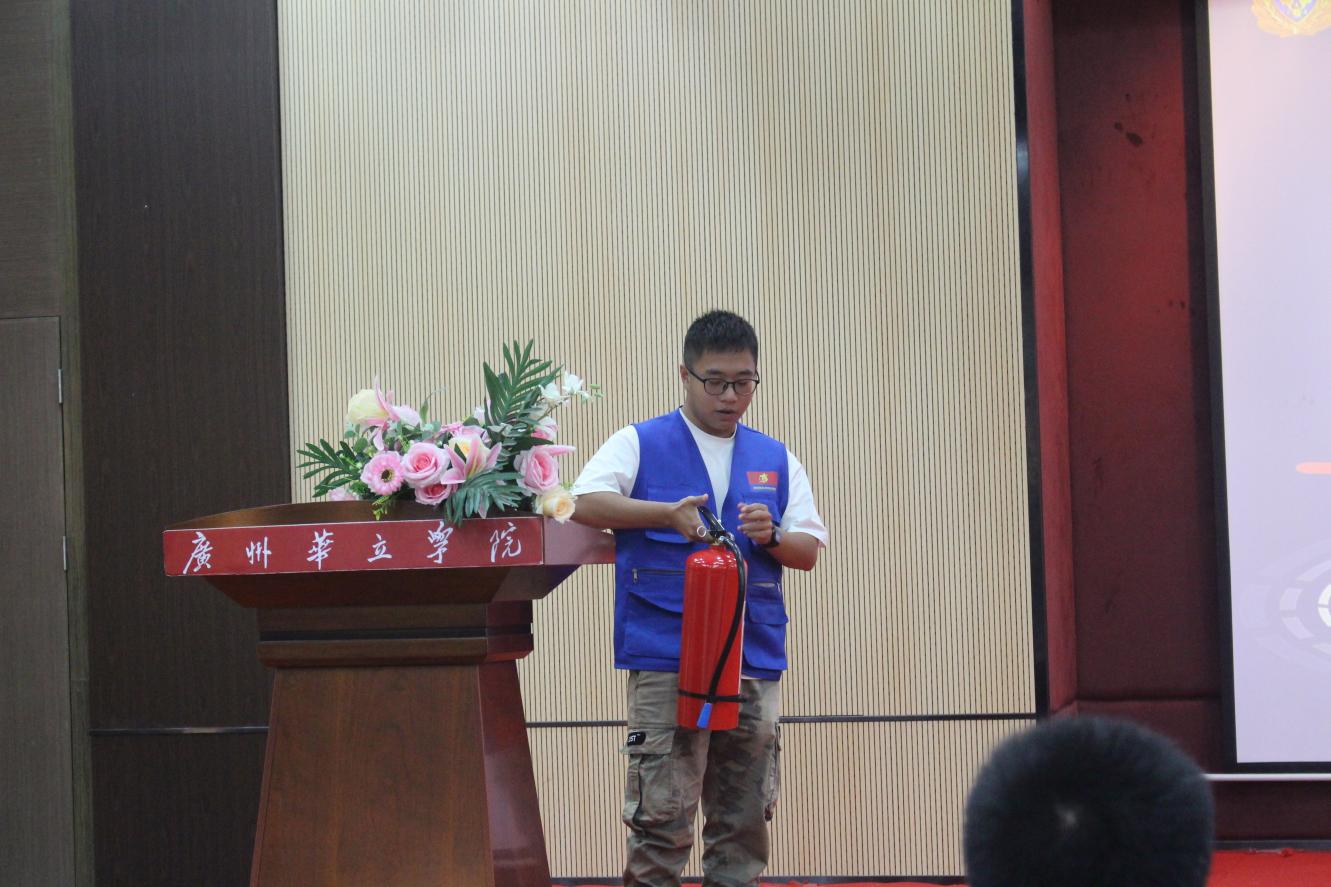 “蓝焰荔志”消防宣传队队员模拟现场授课