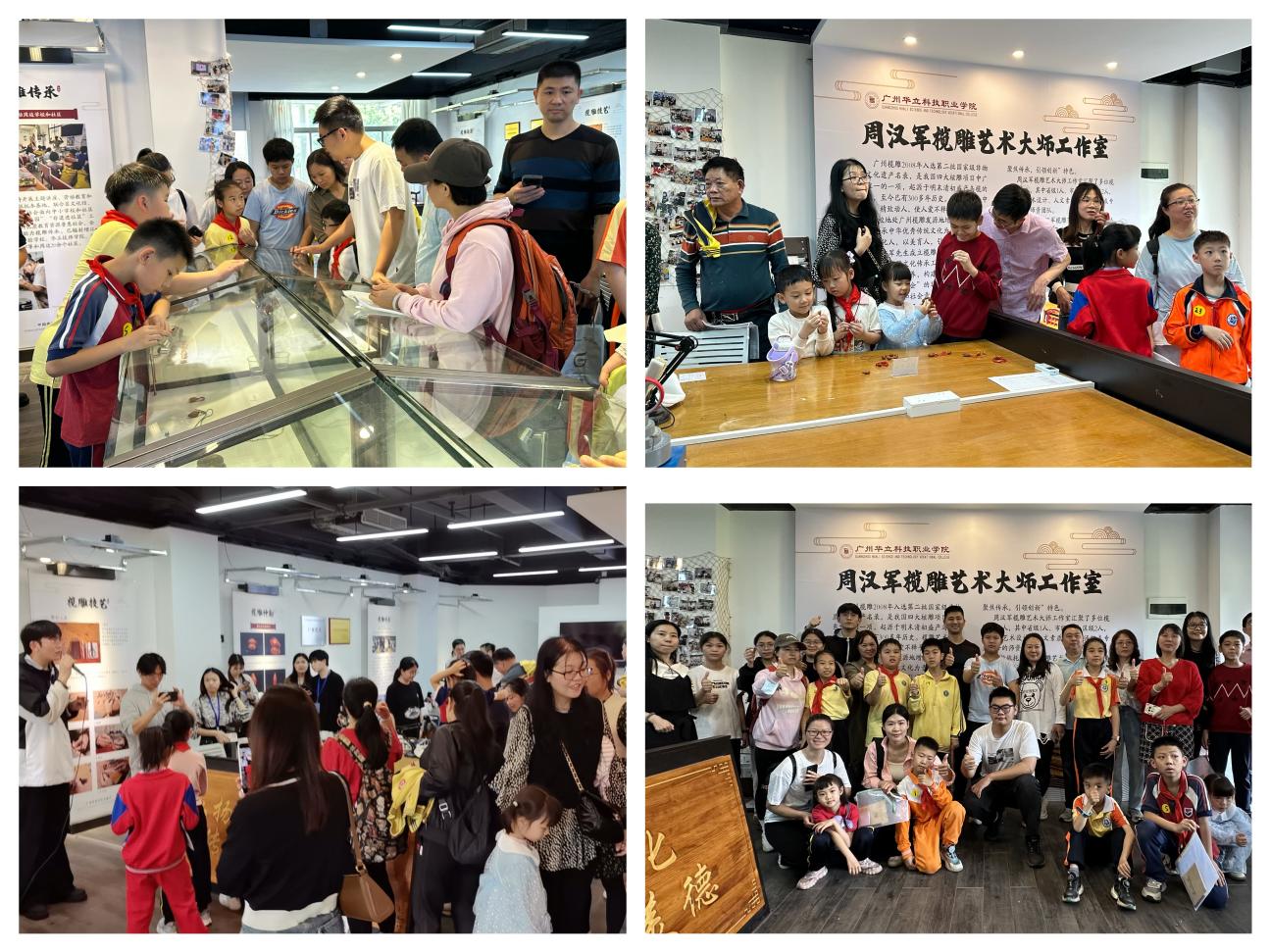 参观的第三站,同学们来到非遗文化科普基地-广州榄雕馆,这里是广东省中华优秀传统传统文化传承基地、广州市非遗传承基地。孩子们和家长被榄雕作品的精致玲珑深深地吸引。整个过程以科普讲解、作品展示、互动等环节进行。通过讲解员的生动介绍,让在场的所有人慢慢体会到如何把一颗小小的榄核雕刻成一件绝世佳品的神奇过程;通过零距离的接触,让大家亲身感受到传统技艺的艺术价值和文化魅力,激发了积极参与中华优秀传统文化传承的热情,增强他们的文化认同感和文化自信心。