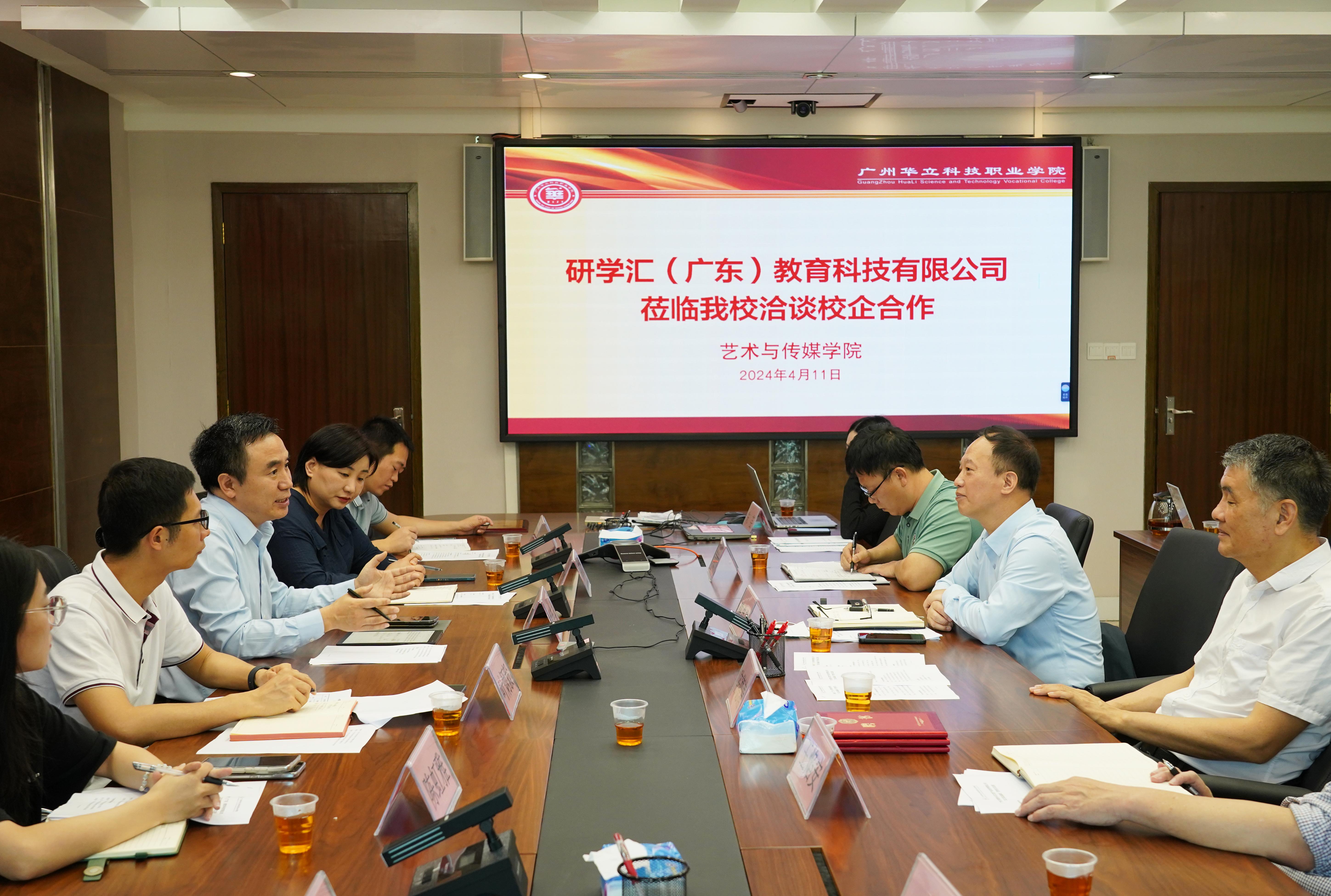 为推进校企深度合作,提高职业教育质量,助力实习生高质量实习就业。4月11日研学汇(广东)教育科技有限公司一行莅临我校洽谈合作事宜,签订战略合作协议,举行实习实训基地授牌仪式。广州华立科技职业学院校长陈德清、党委书记陈良声,教务处副处长陈茜、艺传学院副院长王焰安、产教融合办副主任韦建林、艺传学院相关老师,研学汇创始人杜连丰、秦红岩、叶炳毅等人出席本次会议。