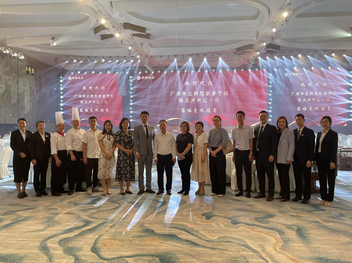 走访中,陈良声书记一行在公司总裁林胜轩等企业高管的陪同下详细了解了企业的发展历程、企业文化及公司经营情况,金塘胜宴餐饮集团是一家三十余年高端的一站式婚宴餐饮企业,旗下品牌有多家餐饮、海鲜楼、婚礼艺术中心、新零售中心等,是广东省较大的综合性粤菜餐饮集团,可为学生提供众多的实习和就业岗位。集团拥有健全的内部人才培养体系及晋升体系,为学生的职业生涯发展提供广阔的成长空间。