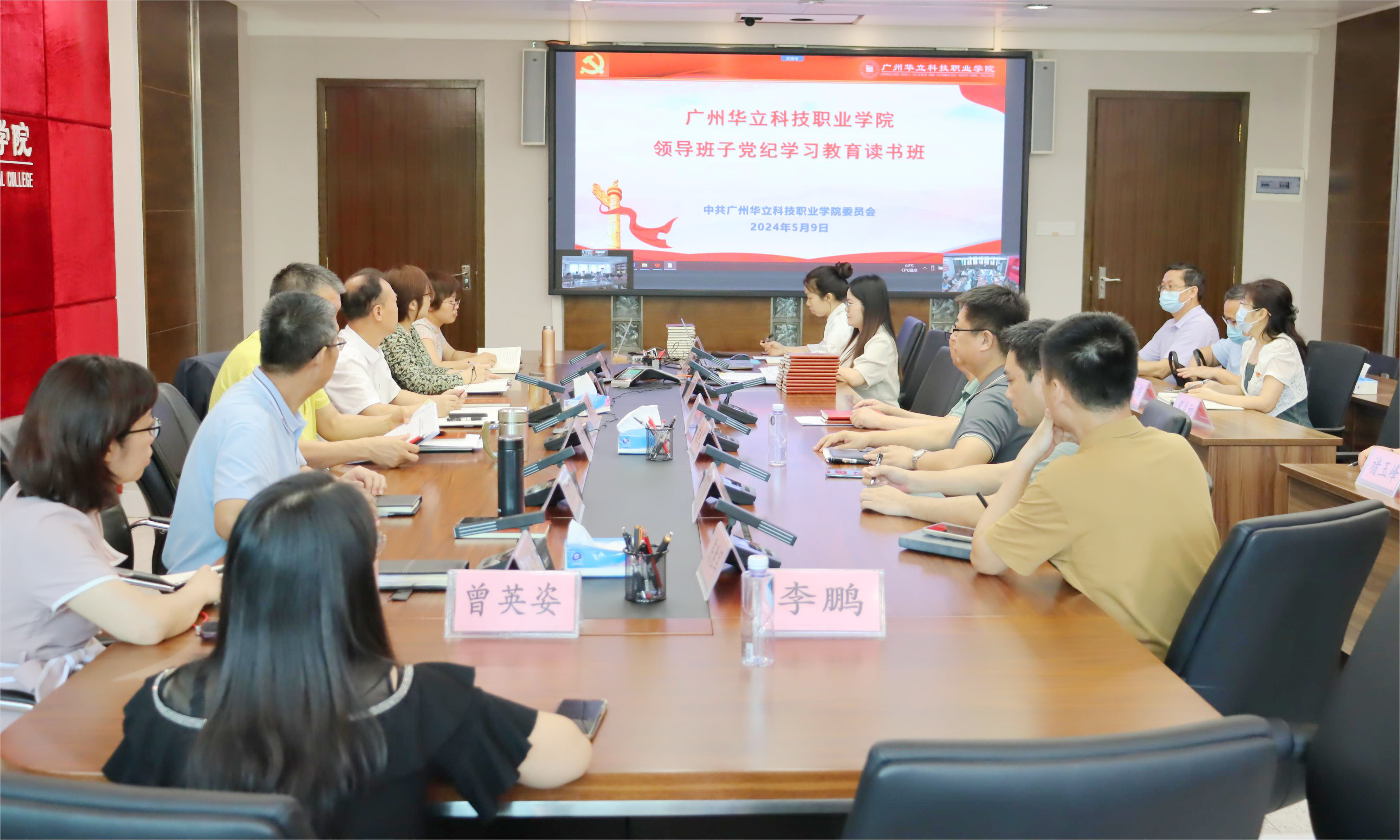 5月9日上午,广州华立科技职业学院举办了领导班子党纪学习教育读书班开班,学校党委书记陈良声以《强化遵守纪律自觉,做到忠诚干净担当》为题讲开班第一课。陈德清校长及其他校领导、校党委委员、纪委委员、党委各部门负责人、各基层党组织负责人出席,云浮校区的相关领导通过视频连线参加。