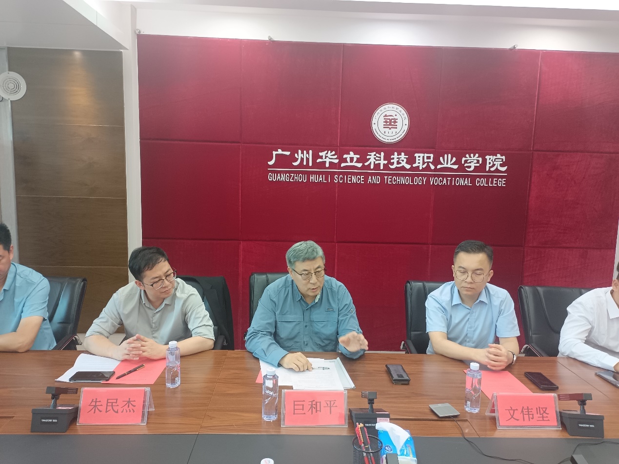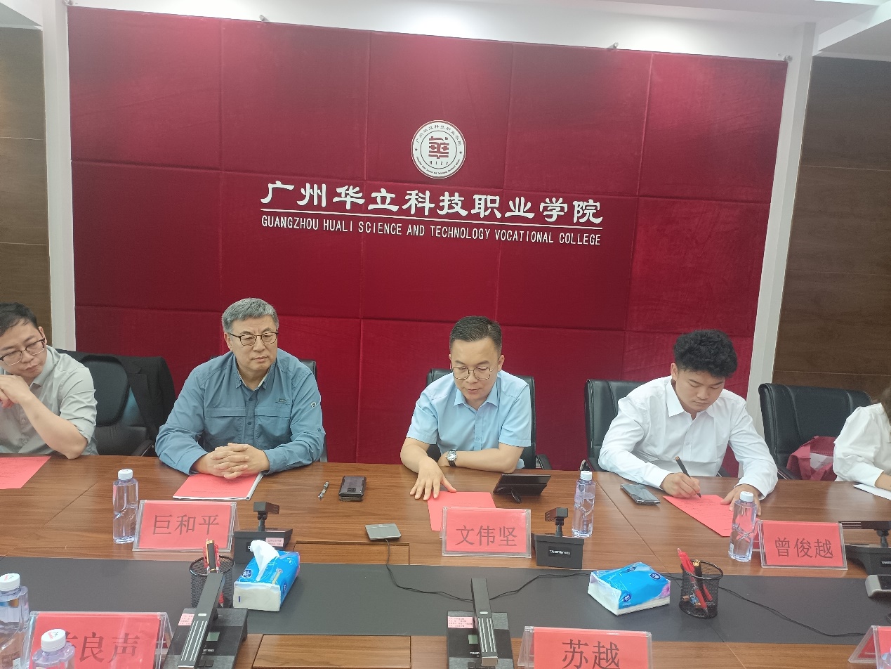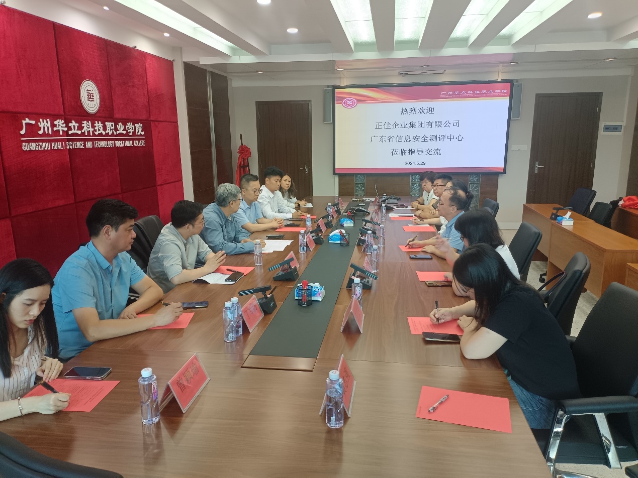 2024年5月29日下午, 广东省信息安全测评中心副主任文伟坚和正佳企业集团有限公司总裁巨和平一行莅临我校开展加强校政企合作、促进学生实习就业等工作交流,学校党委书记陈良声、招就处处长苏越、计算机院长王建华、党总支书记宋海泉和副院长闵小翠等人参加访企拓岗校政企合作交流会。