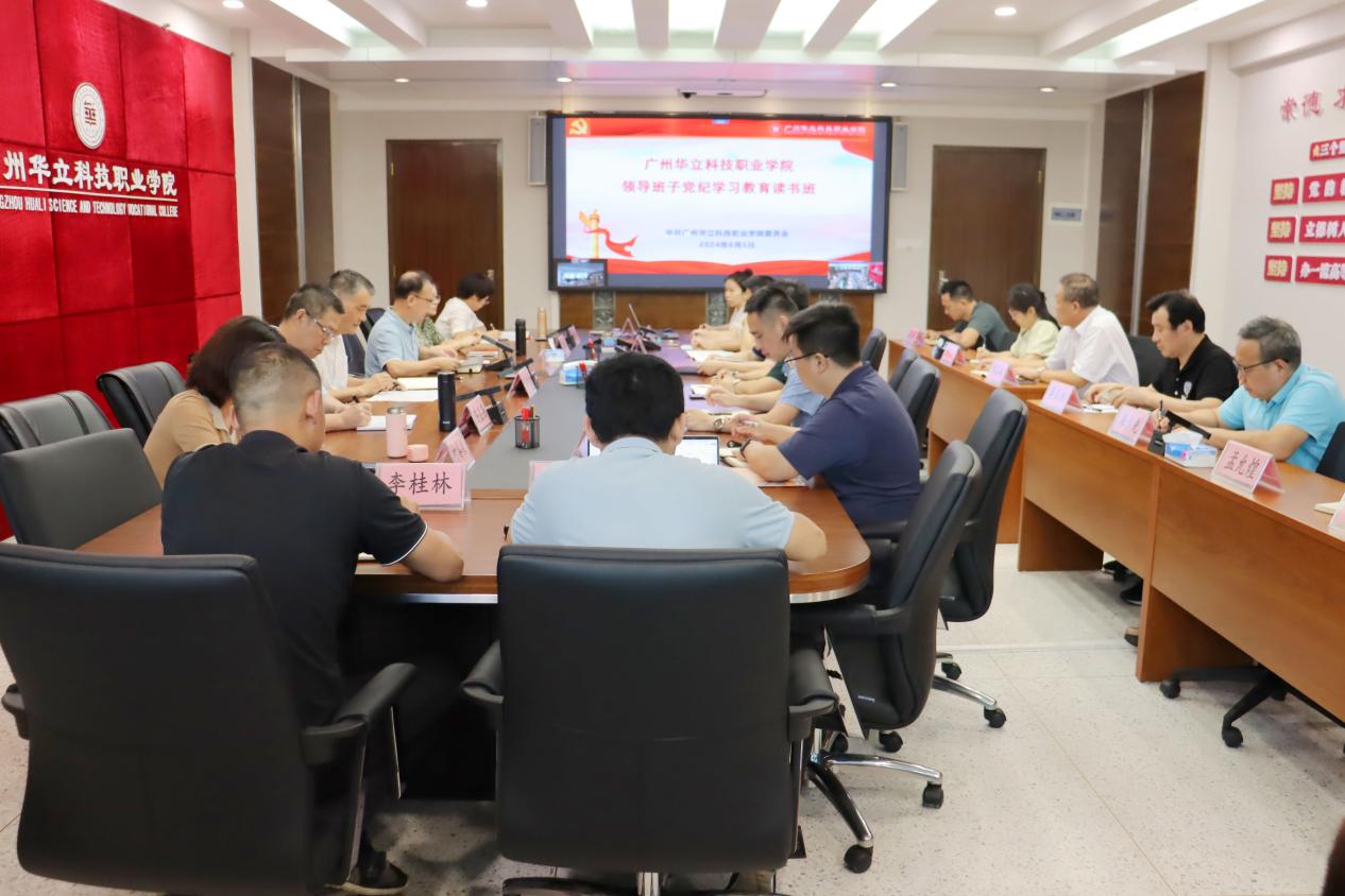 6月5日,广州华立科技职业学院组织领导班子党纪学习教育读书班第三次专题学习,纪委书记王洪艳作专题辅导报告,开展以案说德、以案说纪、以案说法、以案说责。党委书记陈良声主持,陈德清及其他校领导、校党委委员、纪委委员、党委各部门负责人、各基层党组织负责人出席,云浮校区的相关领导通过视频连线参加。