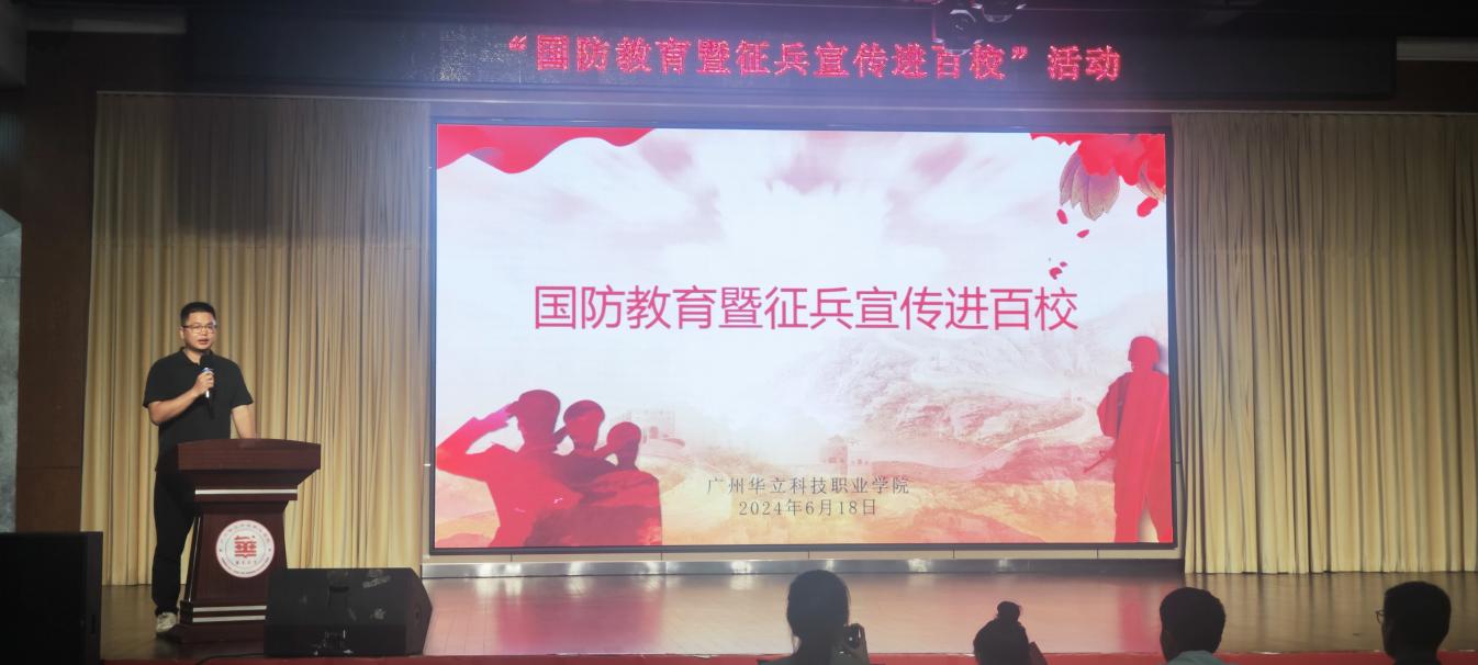 6月18日下午,由增城区人武部、征兵办等部门联合我校组织“国防教育暨征兵宣传进百校”宣讲活动,活动在我校图书馆8楼进行,旨在提高学生的国防意识和参军意愿。出席活动的有区人武部政治委员唐华、区人武部政治工作科科长王敏城、区征兵办林豪、区征兵赵妙君、区教育局顾钻均、区委宣传部邹金科、区退役军人事务局易翔、区卫建局李进、区公安局邱永昌、王洪艳副校长、陈胜军处长、各二级学院学管主任、辅导员和学生代表。