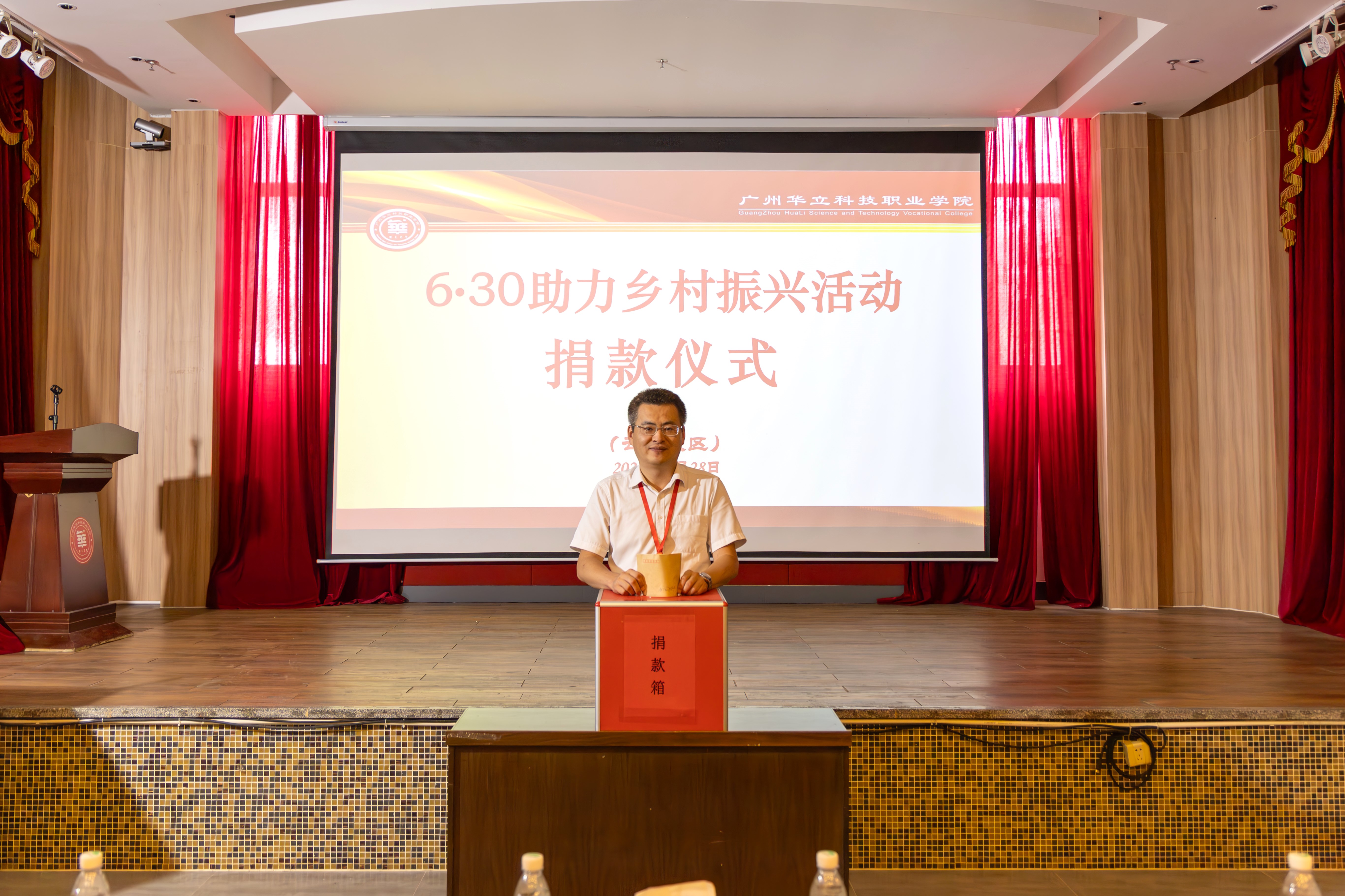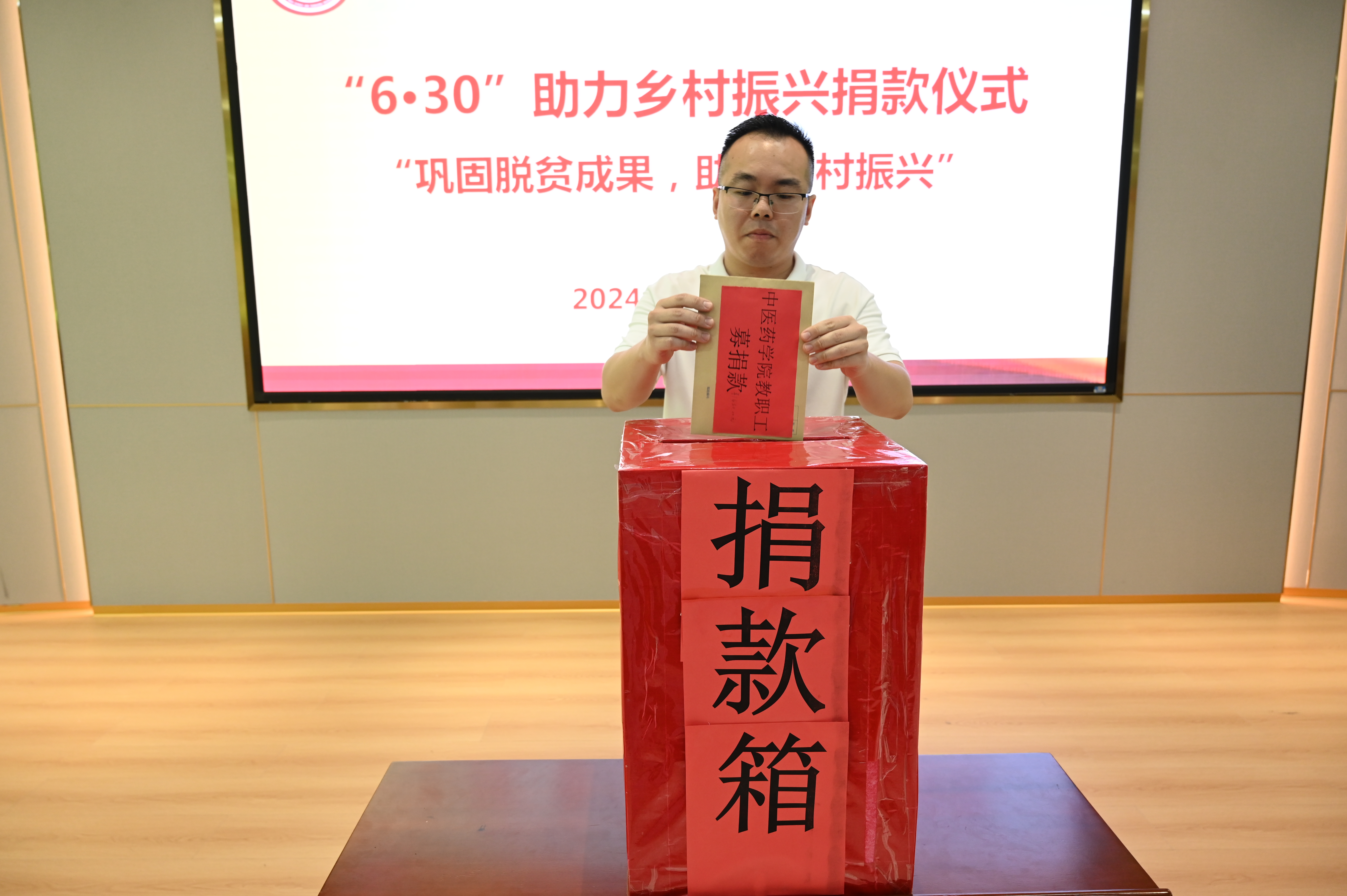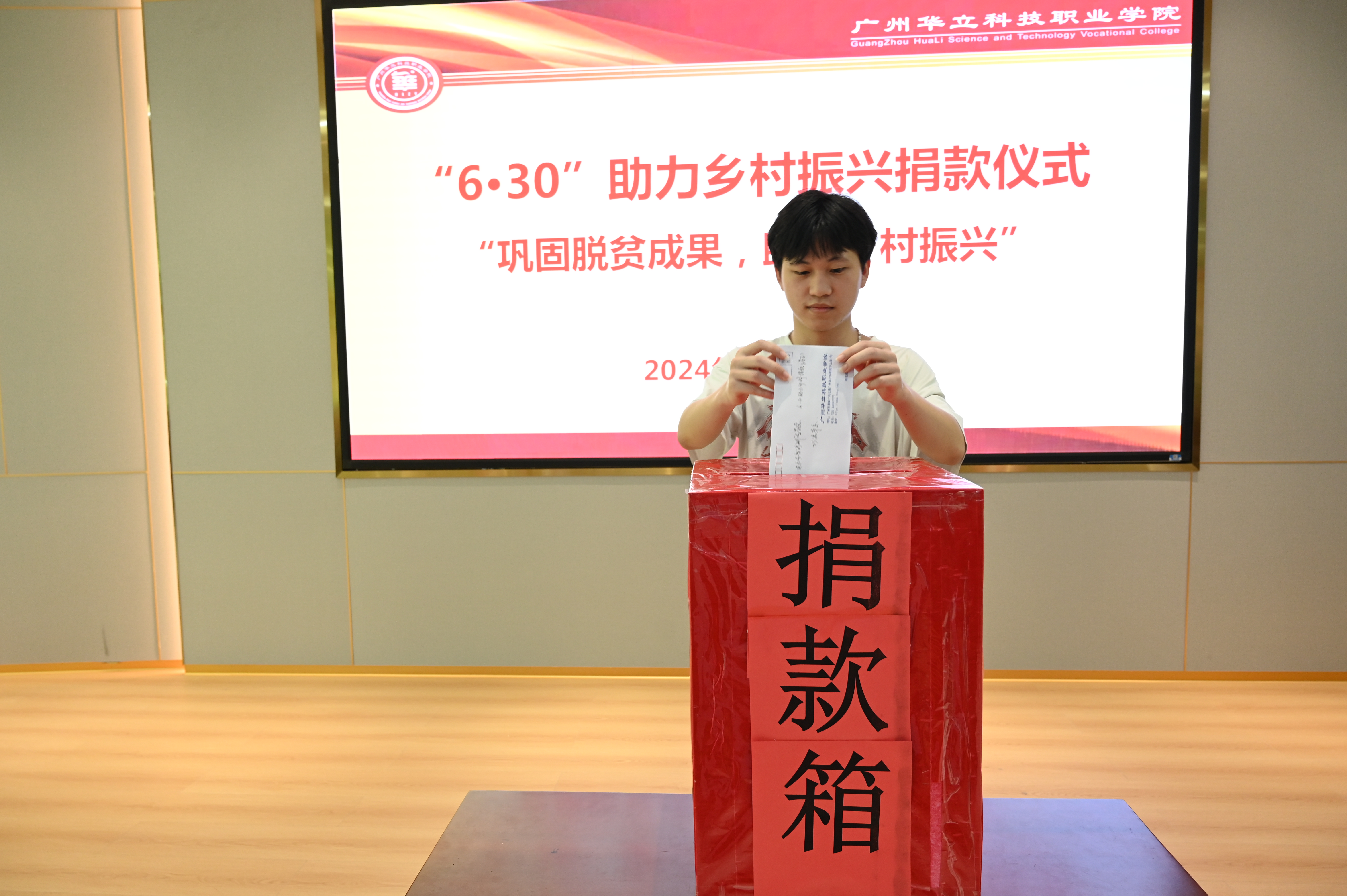 为进一步弘扬中华民族扶贫济困、乐善好施的传统美德,根据《广东省2024年“6·30”助力乡村振兴活动工作方案》文件精神,6月28日上午,学校工会举行了“6·30”助力乡村振兴爱心捐款活动。学校领导班子成员、教师代表、学生代表参加了捐款仪式。捐款仪式由工会主席、常务副校长马俊主持。
