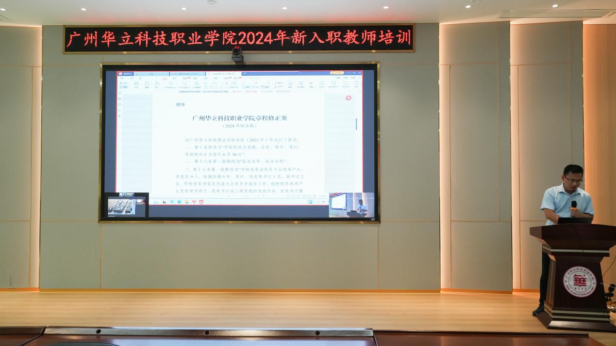 接着,学校办公室主任李鹏对学校的基本情况作了全面简介,包括学校的发展简史、职能部门设置、二级学院情况、学校章程等,重点介绍了学校的办学理念、发展目标和学习了学校章程,希望新入职教师了解华立文化,尽快融入华立大家庭。