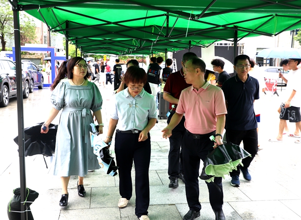 走访中,校领导充分肯定了大家在酷热中坚守岗位、确保学生入学顺畅有序的工作状态,以及周到细致的志愿服务精神,并表达了真诚的感谢。