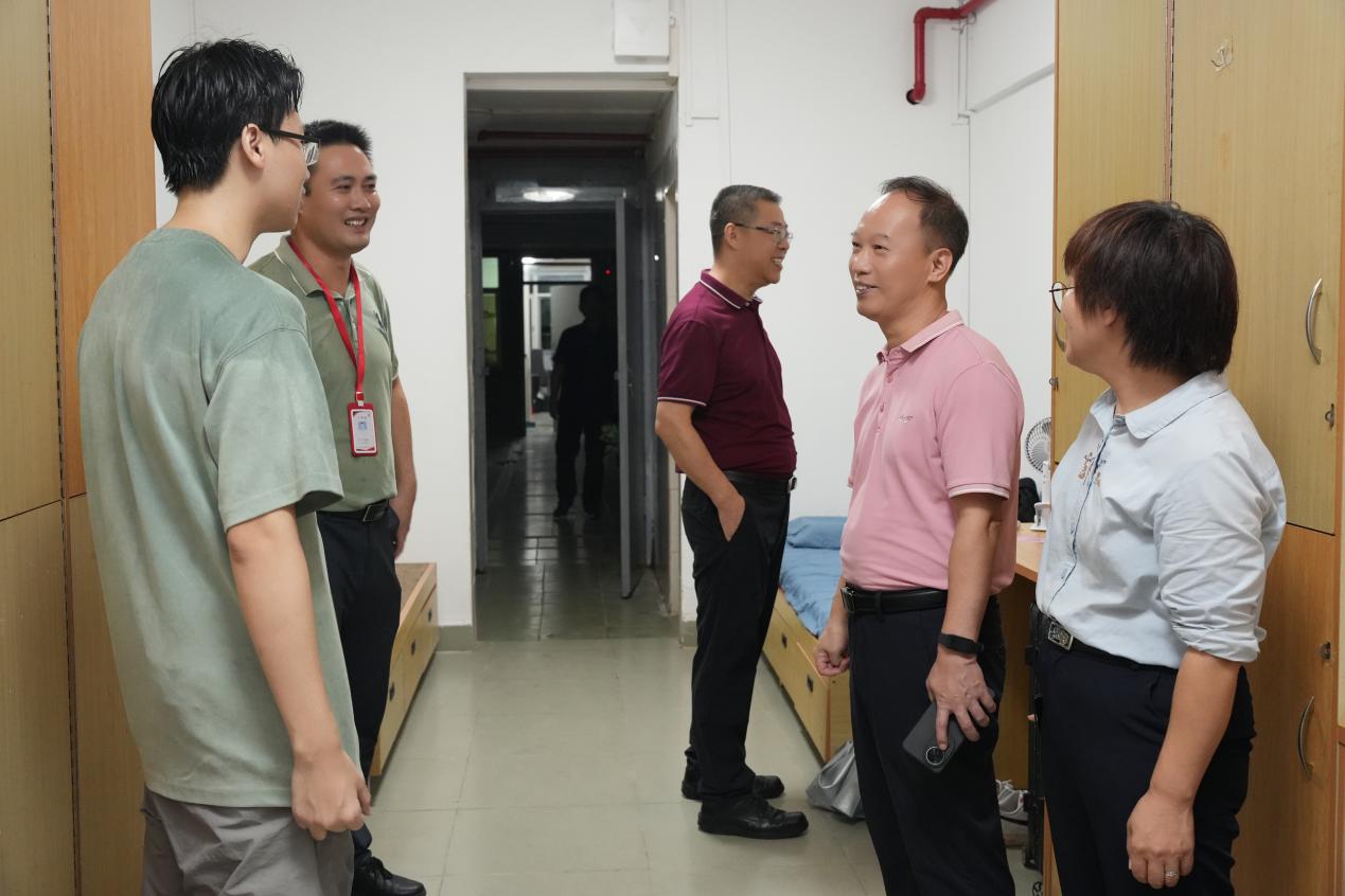 新学期伊始,为了解新生报到和入住情况,传达学校对广大学子的关怀与问候,9月6日上午,学校党委书记陈良声、常务副校长马俊、副校长陈显强,王洪艳、校长助理叶春桃及相关职能部门负责人走访校园,深入学生寝室,走访慰问学生,并就相关工作提出指导意见,确保新学期各项工作平稳有序进行。