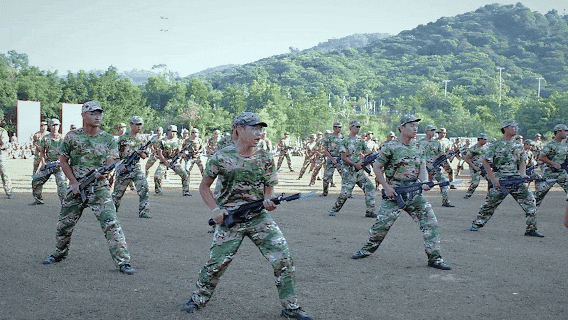 戎装换上,展英姿飒爽。新生们步伐矫健坚毅、口号整齐嘹亮、动作整齐划一,依次通过主席台前,以坚韧不拔的姿态,圆满完成了军训汇报,展现出新时代华立学子的热血与担当。