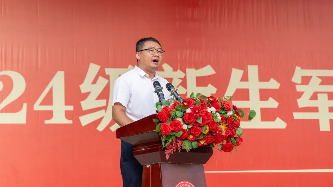 艺术与传媒学院2024级网络新闻与传播专业学生陈曦代表优秀学员进行发言,分享了个人的学习收获与成长感悟。他鼓励在座的每一位同学以军训为起点,铭记军训第一课,以坚韧的姿态和不屈的意志迎接大学新生活。