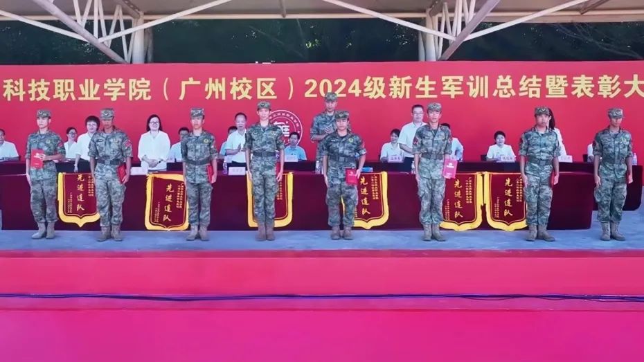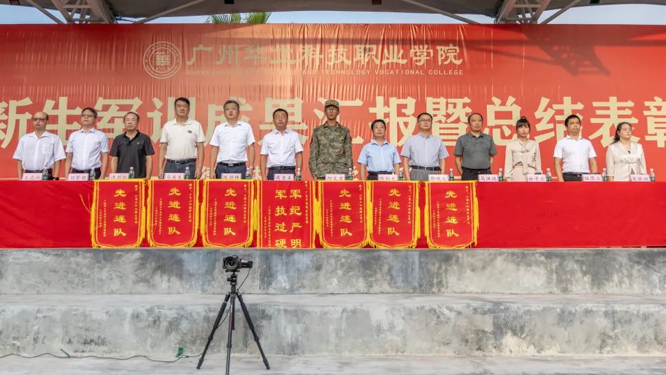 学校党委书记陈良声,常务副校长马俊,副校长陈显强、王洪艳,校长助理叶春桃,增城区人武部政委唐华出席了广州校区表彰大会;副校长高尧来、校长助理张剑峰、增城区人民武装部应急连副连长何文发出席了云浮校区表彰大会。全体军训教官,相关职能部门与二级学院负责人、学管主任、辅导员及全体新生参加了大会。