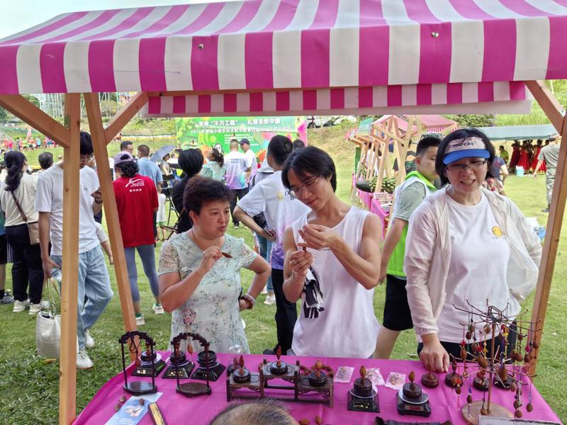 10月1日,以“学用‘千万工程’ 礼赞丰收中国”为主题的2024年增城小楼农民丰收节暨第四届邓山打榄文化节在小楼镇星椤纪大森林(广州二龙山花园)举行。本次活动由广州市增城区农业农村局指导,小楼镇人民政府主办,旨在弘扬中华优秀农耕文化,展示现代农业发展成果,宣传特色农产品品牌,推动农业农村现代化,助力“百千万工程”。我校榄雕协会师生参加并助力宣传推广国家级非物质文化——广州榄雕,以分享非遗成果的形式展现了丰收的喜悦,表达了对祖国75周年华诞的美好祝福。