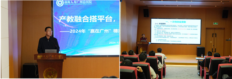 2024年12月3日下午,我校联合前海人寿广州总医院和广州市增城区人力资源和社会保障局在前海人寿广州总医院门诊一楼阶梯会议室共同举行了主题为“产教融合搭平台,校企合作谱新篇——2024年“赢在广州”穗港澳青年访企研学交流活动”。