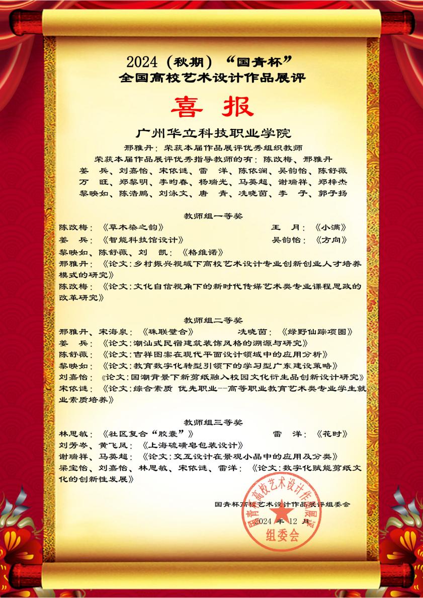 二十五载华立匠心谱,国青赛场艺传华章著 ——我校艺传学院师生在2024年“国青杯”全国高校艺术设计作品展中再创佳绩