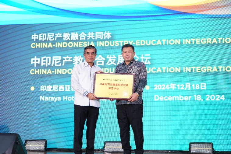 印尼劳工部部长亚西尔利(Yassierli)出席“中印尼产教融合共同体”成立大会并致辞。亚西尔利部长对“共同体”给予了高度评价,希望“共同体“在提高人口质量工作中发挥重要作用。胡海滨会长向劳工部部长详细介绍了“共同体”将引入100所中国高职院校与100所印尼大学合作计划,并根据中资企业的用人需求,开展定向专业合作,引入中国的职业技能培训和鉴定标准。并向部长提议开发“共同体”与“劳工部”双认证的职业技能鉴定标准和证书,以满足中资企业对人才的职业技能要求。部长欣然接受提议,并商议提出2-3年的规划方案。
