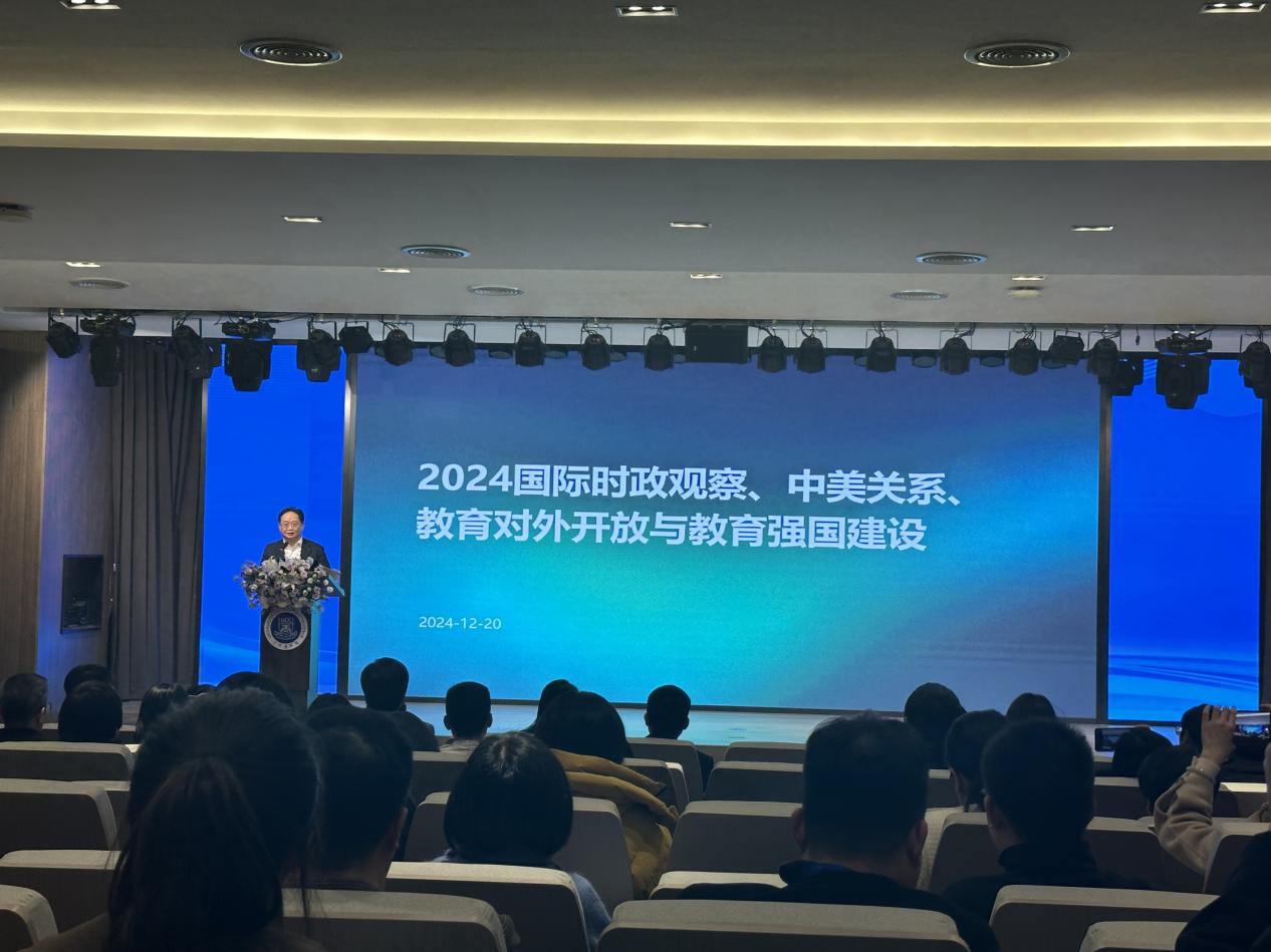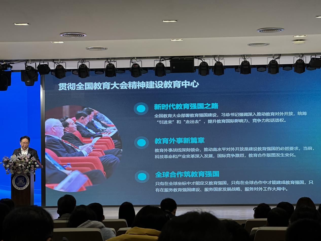 最后,广东省教育厅交流合作处(港澳台事务办公室)李金俊处长对整个大会作总结并发表了“2024国际时政观察、中美关系、教育对外开放与教育强国建设”专题报告,从新时代教育强国之路,外事教育新篇章,全球合作筑教育强国等方面总结式发言,并就教育外事工作中的困难与挑战对在场的高校从业者做出了鼓励与支持。