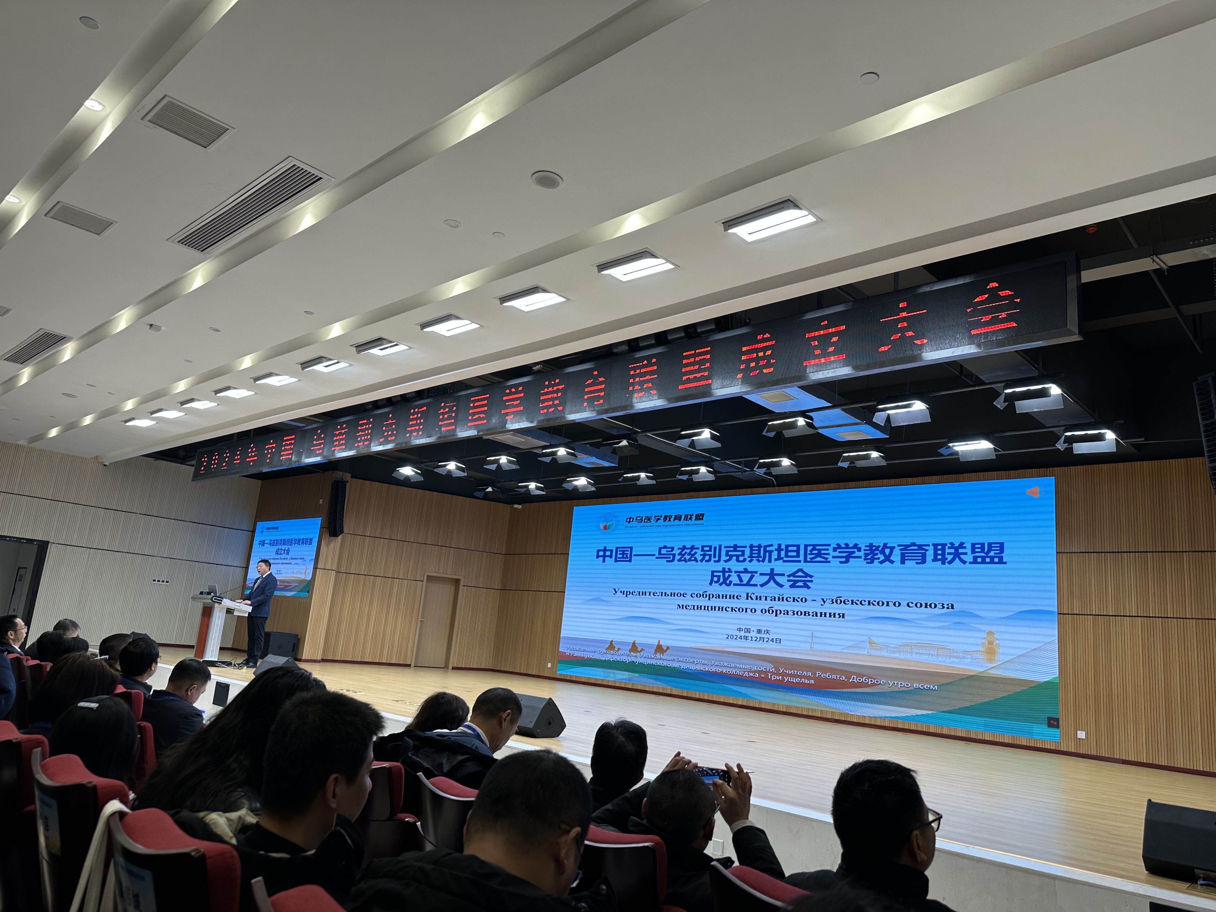 12月24日,中国-乌兹别克斯坦医学教育联盟成立大会正式开始。首先,重庆市万州区政府领导、重庆山峡医药高等专科学校曹毅书记致辞,介绍了联盟成立的初衷和愿景,并对所有来宾表示欢迎。