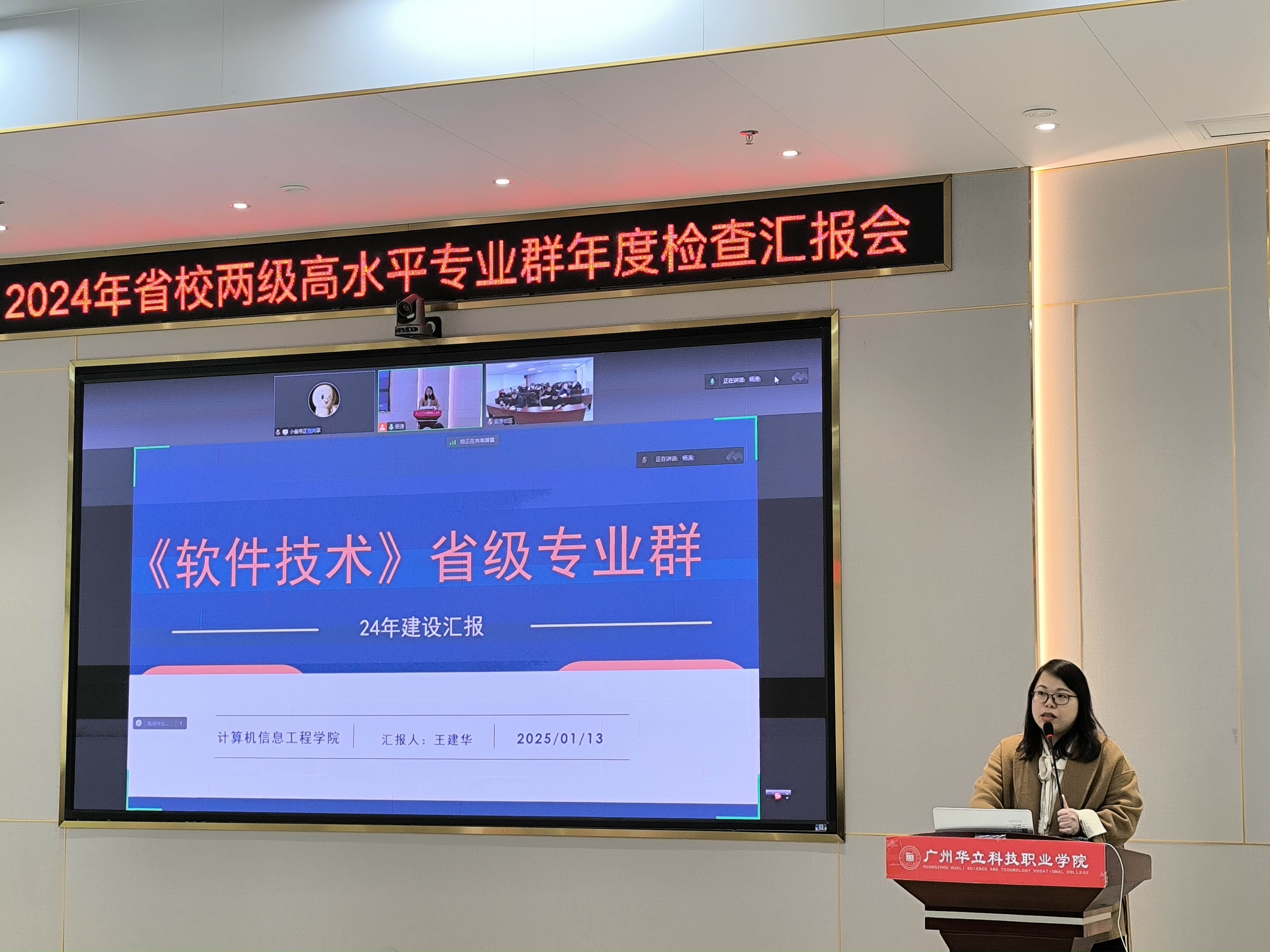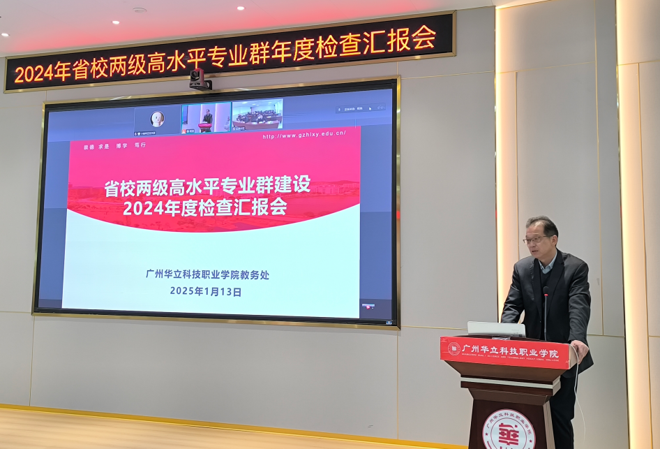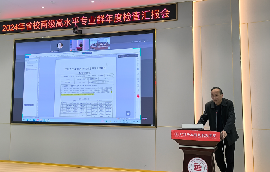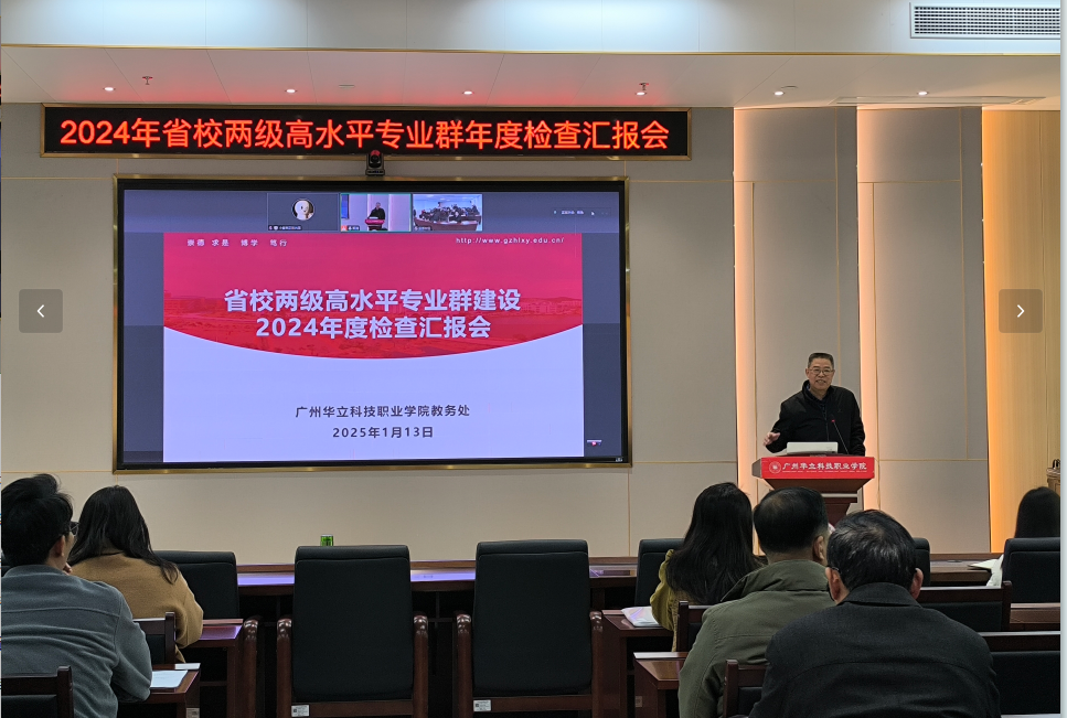 为全面了解我校高水平专业群2024年度建设工作开展情况,保障我校省级和校级立项的高水平专业群建设有序有效进行,1月13日下午,学校在图书馆104会议室召开省校两级高水平专业群建设2024年度检查汇报会,同时连线云浮校区。学校副校长陈显强、校长助理张剑锋、科研处处长刘兰平、教务副处长王泽秀、曾英姿、伍思立、省校两级专业群负责人及骨干教师参加了此次会议,会议由王泽秀主持。