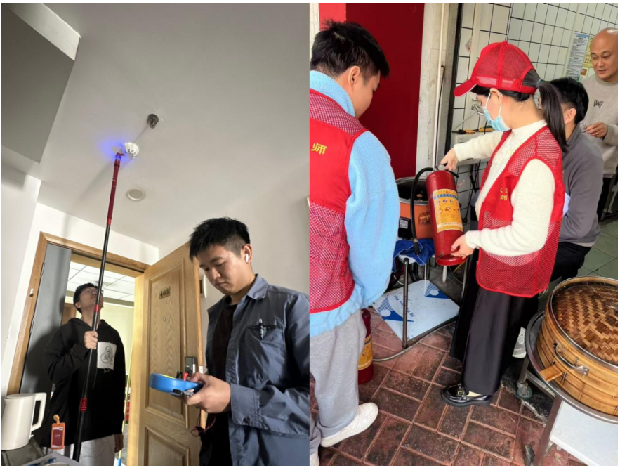 保卫处工作人员检查测试消防设施