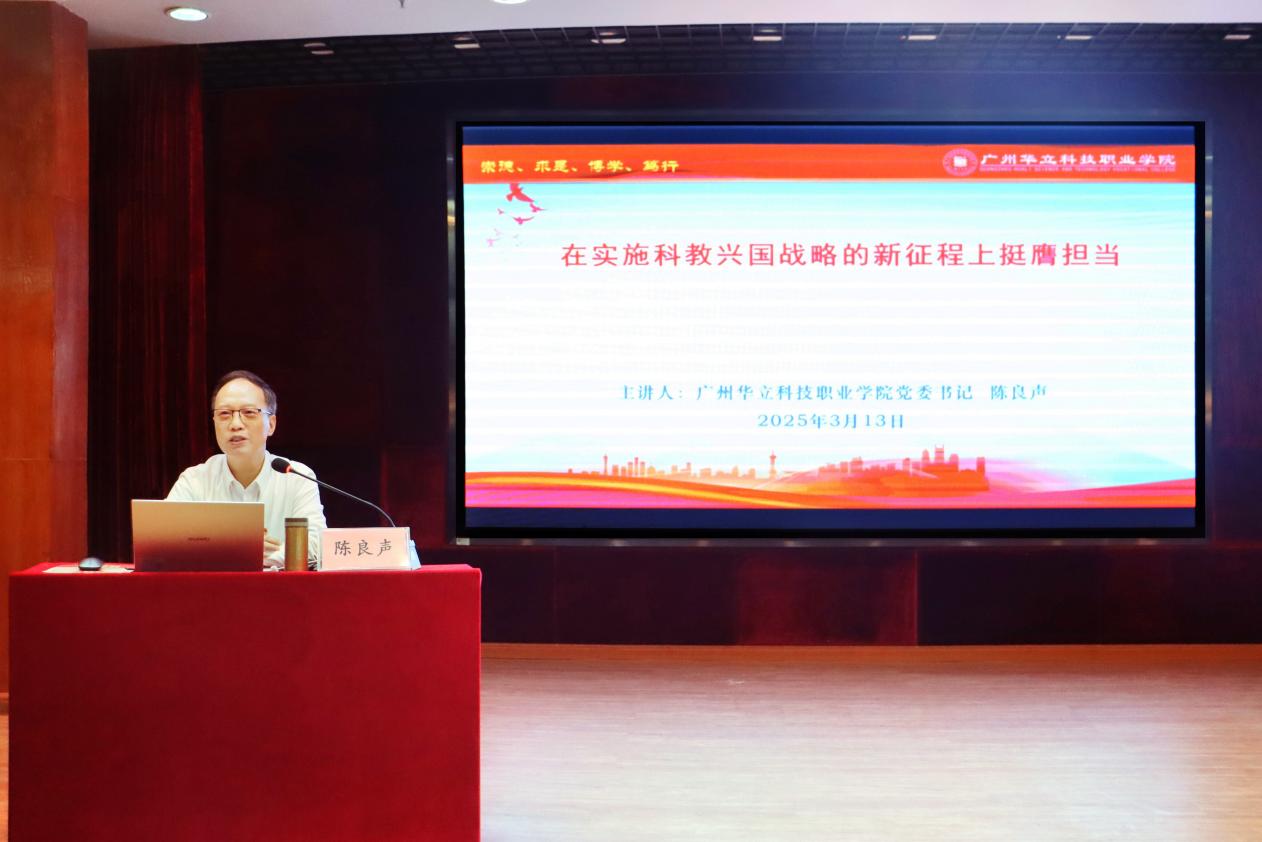 陈良声书记以十四届全国人大三次会议政府工作报告为切入点,从“着眼长远发展的重大考量、加快科教兴国的战略部署、充分发挥高校的重要作用、在新征程上彰显青春风采”四个方面深刻阐释了青年在科教兴国中应有的使命担当。陈书记指出,科技是“国家强盛之基、安全之要”,要以教育优先发展夯实人才根基,以科技自立自强突破“卡脖子”难题。陈书记强调,要推进教育、科技、人才“三位一体”协同融合发展,加快构建高质量教育体系,推动学科交叉与产教融合。