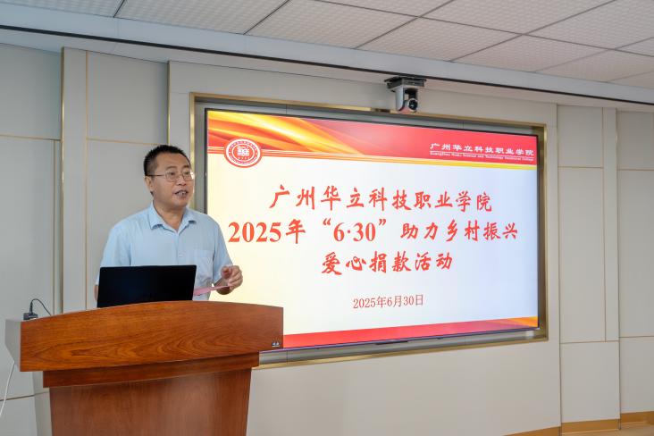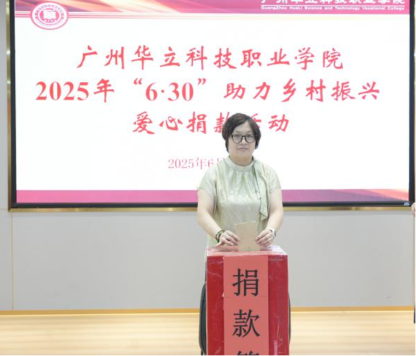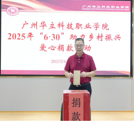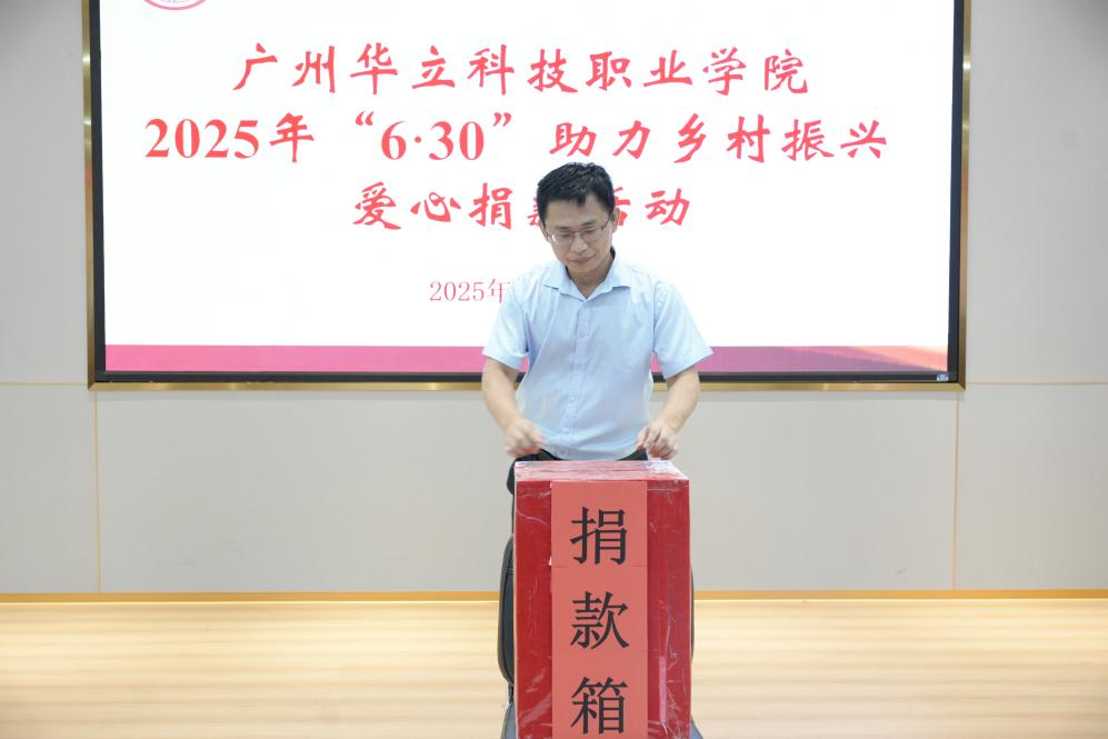 为全面贯彻党的二十大和二十届二中、三中全会精神,深入贯彻习近平总书记视察广东重要讲话、重要指示精神,按照省委、省政府实施“百县千镇万村高质量发展工程”、绿美广东生态建设决策部署,根据《广东省教育厅关于开展 2025年“6·30”助力乡村振兴活动的通知》,我校于2025年6月30日在图书馆104举行助力乡村振兴爱心捐款活动。校长廖俊杰,党委书记陈良声,常务副校长马俊,副书记、副校长高尧来,副校长陈显强、王洪艳,校长助理叶春桃、李鹏,工会委员及师生代表出席本次活动。