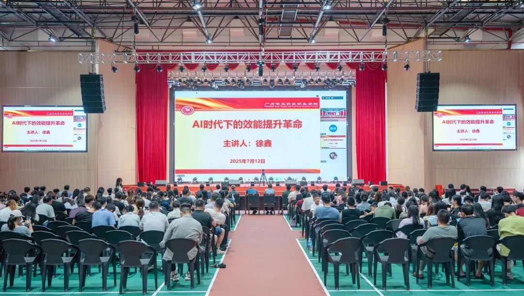 2025年7月12日上午,广州华立科技职业学院在图书馆八楼举行举行“AI时代下的效能提升革命”专题讲座。此次讲座是学校贯彻落实《教育部办公厅关于组织实施数字化赋能教师发展行动的通知》的重要举措之一,旨在全面提升我校教师数字素养,通过培训推动人工智能技术与教育教学深度融合。学校校长廖俊杰、党委书记陈良声率领全体教职工参加了讲座(云浮校区同步连线)。讲座由学校常务副校长马俊主持,现场座无虚席,反响热烈。