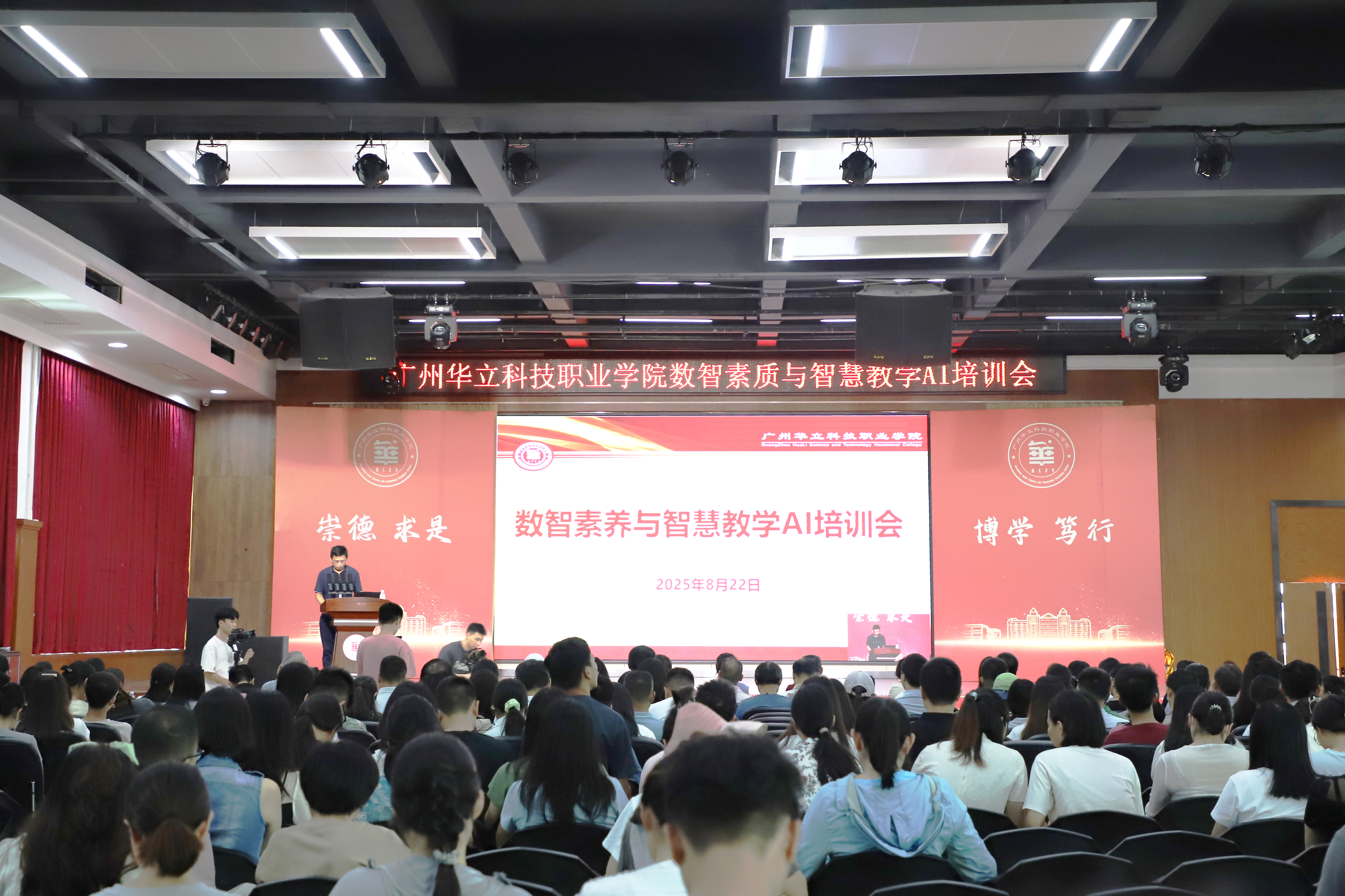 2025年8月22日下午,我校在图书馆8楼成功举办“数智素养与智慧教学AI培训会”。本次培训旨在帮助教师深入了解人工智能、大模型等前沿技术在教育教学中的应用,提升教师的数智素养和智慧教学能力。本次培训覆盖全体教职工,云浮校区通过视频连线同步参会,形成跨校区联动学习格局。出席培训会议的学校领导有学校常务副校长马俊、副校长陈显强、高尧来、王洪艳。本次主讲嘉宾为科大讯飞高等教育研究院高级研究员史祎和华南区高级课程顾问廖誉婷。培训由校长助理、校长办公室主任李鹏主持。
