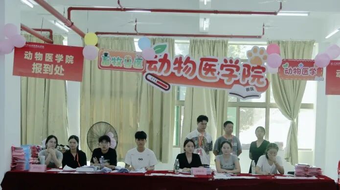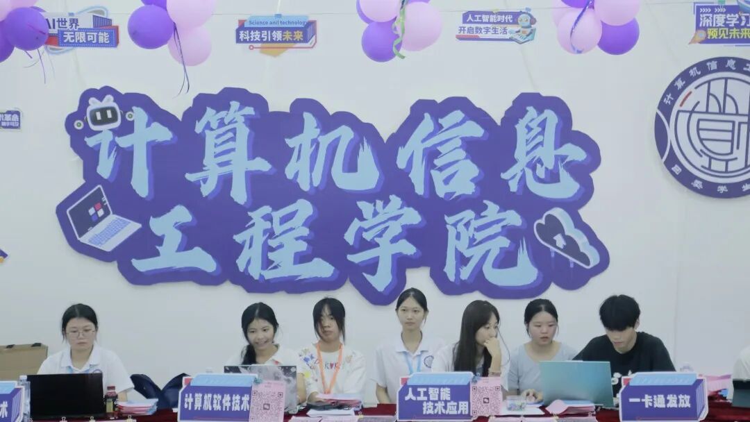 科技楼内,各二级学院报到点标识醒目、特色鲜明,成为迎新现场的一道亮丽风景线。