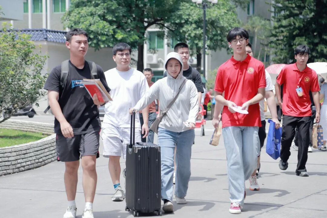学校校长廖俊杰,党委书记陈良声,副校长陈显强、高尧来等校领导深入报到现场。慰问了在酷暑中坚守岗位的工作人员和学生志愿者,详细了解新生报到情况,向新生及家长传递学校的关怀与问候。