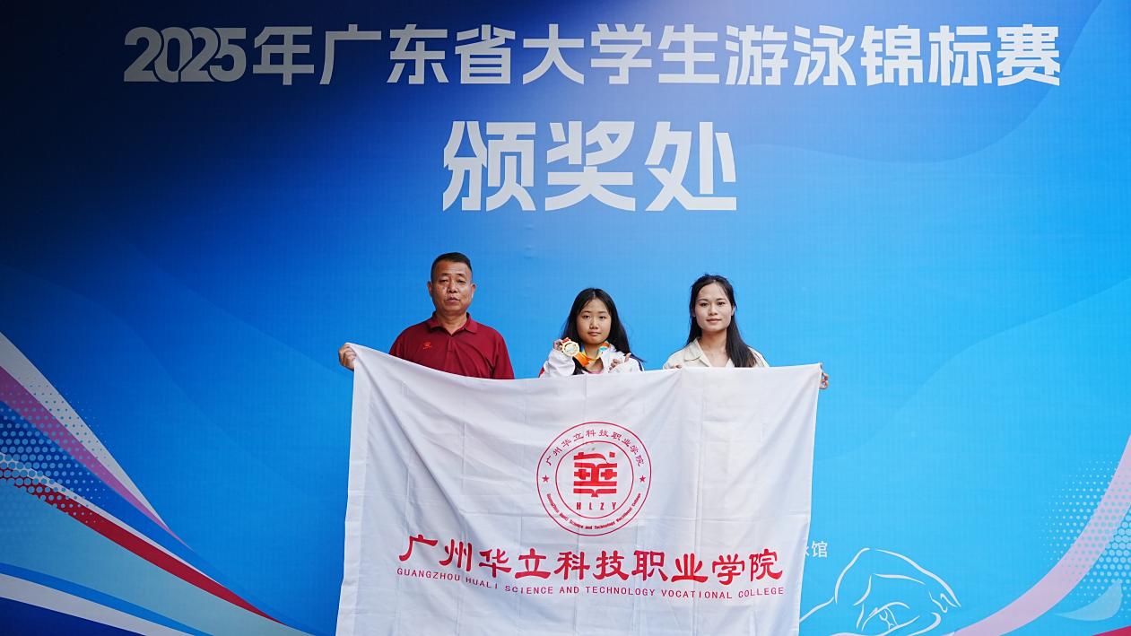 近日,2025年广东省大学生游泳锦标赛在华南师范大学(大学城校区)游泳馆圆满落幕。经过四天的激烈角逐,广州华立科技职业学院代表队以出色的表现和奋勇拼搏的体育精神,在丙组女子100米蛙泳项目中勇夺金牌、女子 50 米蛙泳项目摘得银牌,另外在乙A组男子100米自由泳比赛中获得第七名,实现历史性“开门红”,书写了学校体育竞技的新篇章。