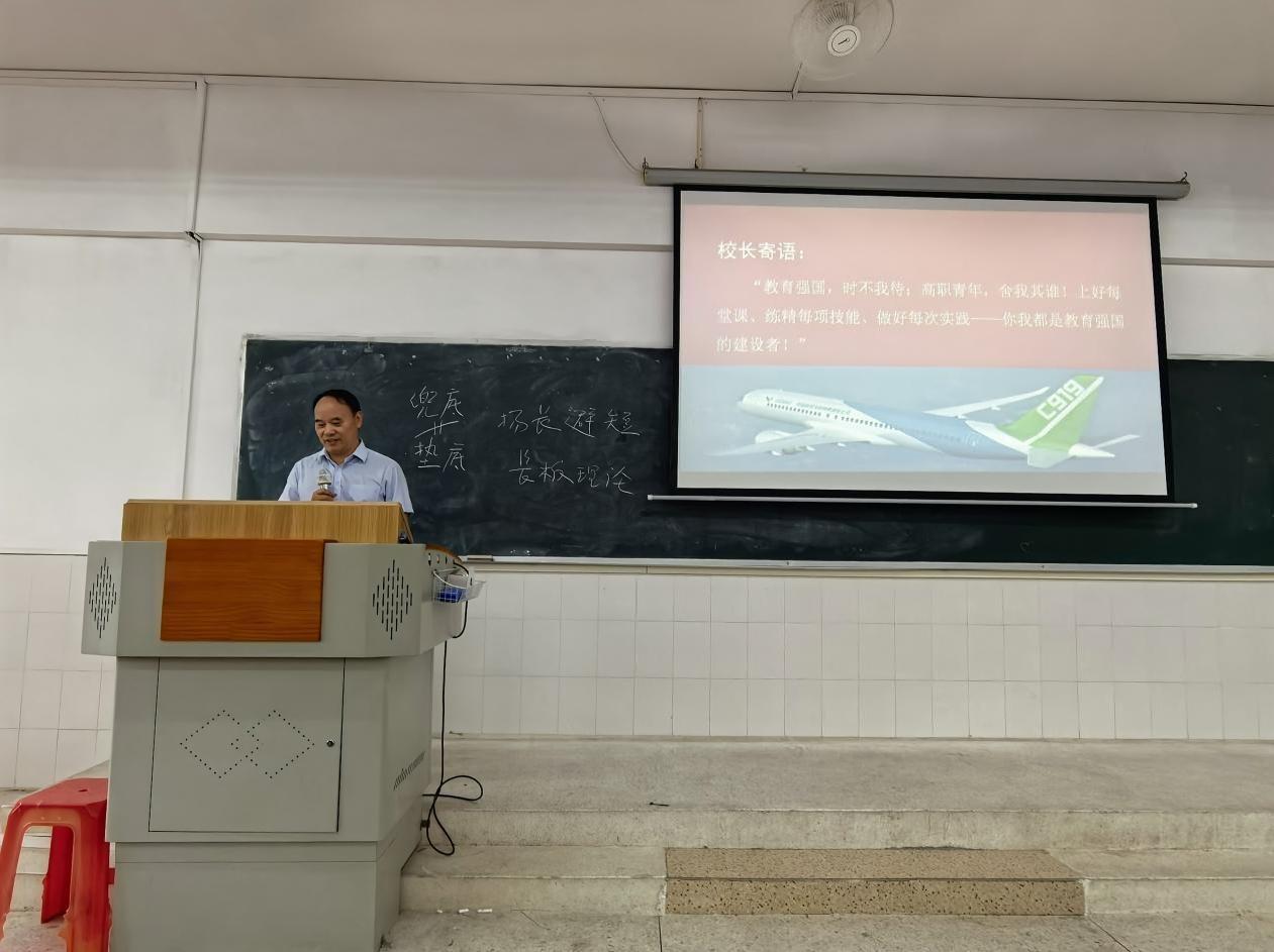 廖校长在最后总结时寄语,职业教育现代化是教育现代化的重要基石,高职青年应秉持精益求精的工匠精神和爱岗敬业的职业态度,在实现中国式现代化征程中贡献“职教力量”。