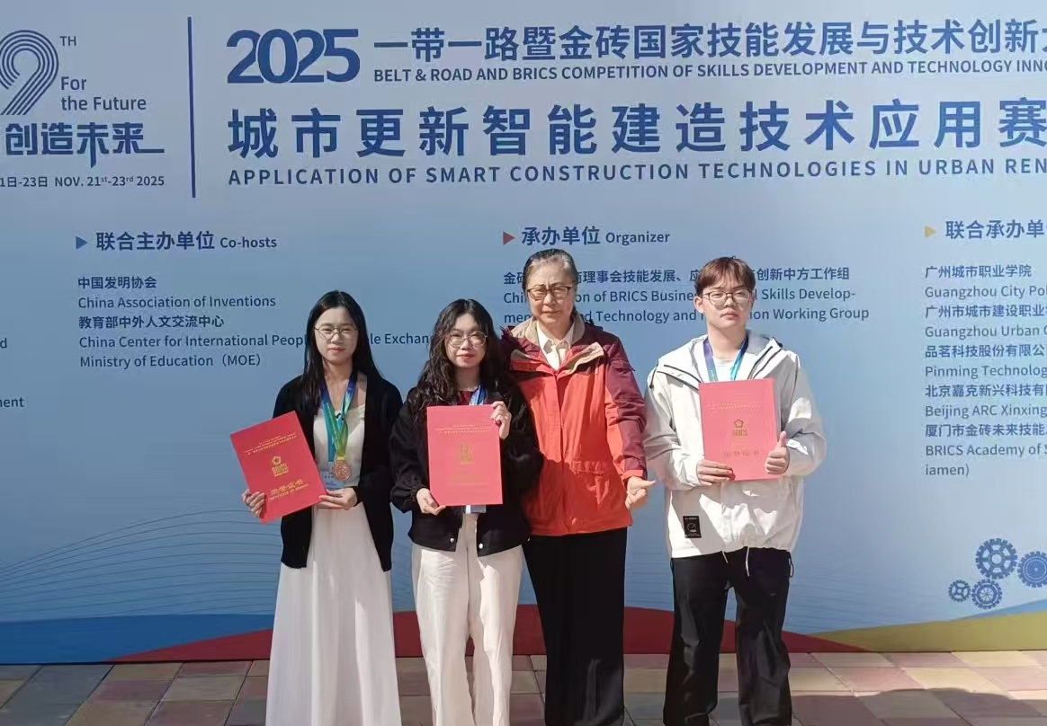 11月22日,2025一带一路暨金砖国家技能发展与技术创新大赛——城市更新智能建造技术应用赛项全国总决赛在广州城市职业学院隆重举行。在备受关注的 “城市更新智能建造技术应用” 赛项中,广州华立科技职业学院(简称 “华立职院”)城建学院学子凭借扎实的专业功底、娴熟的操作技术与高效的团队协作,从全国200余支参赛队伍中脱颖而出,最终斩获全国三等奖,充分展现了华立职院在城市智能建造领域的人才培养实力与学子的专业风采。