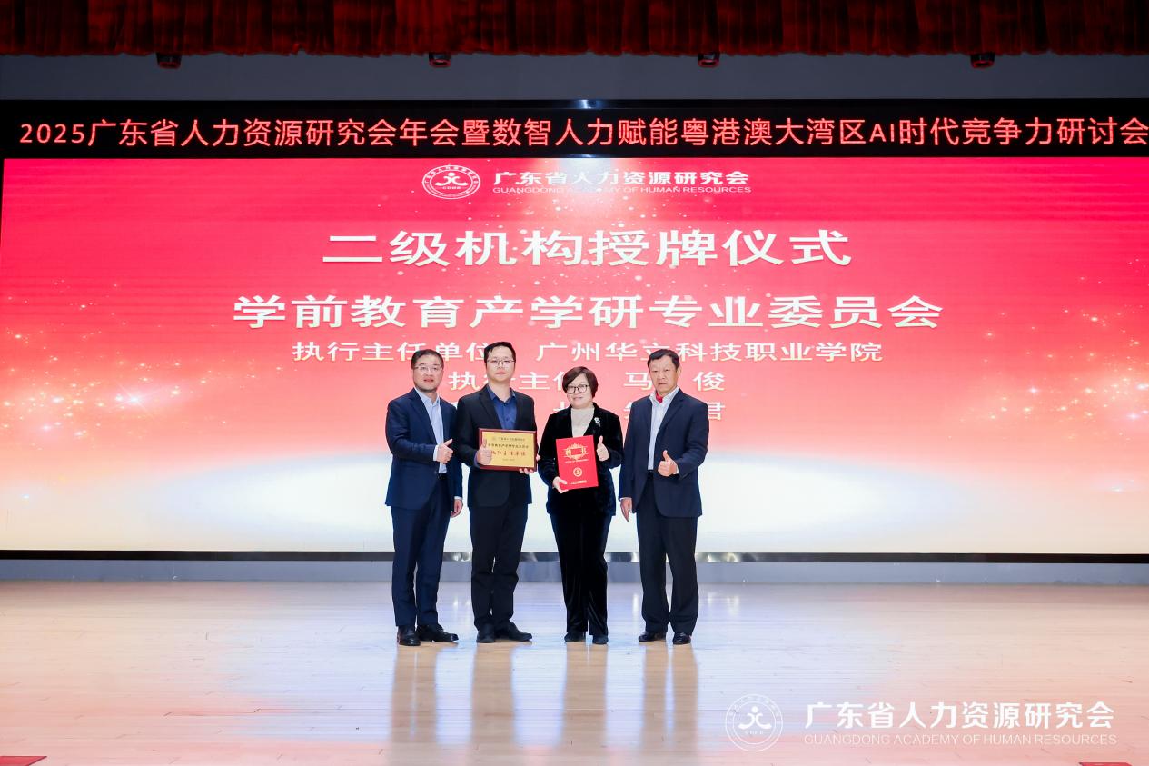12月6日,2025年广东省人力资源研究会年会暨数智人力赋能粤港澳大湾区AI时代竞争力研讨会在广州天河召开,广州华立科技职业学院常务副校长马俊、艺术与传媒学院院长朱君、培训学院副院长林志受邀参会,学校凭借在产教融合与人才培养领域的突出成果,荣获2025年度人力资源“创新实践奖”。