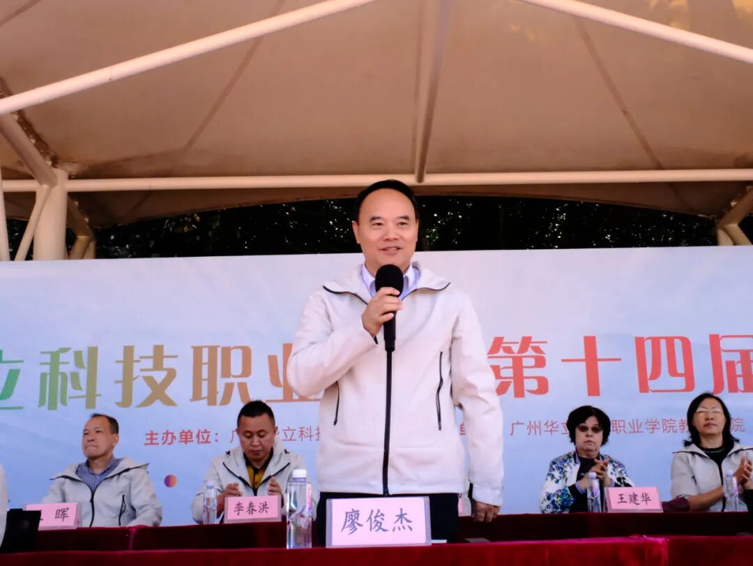 廖俊杰校长宣布广州华立科技职业学院第十四届师生运动会闭幕。在师生们热烈的掌声中,本届运动会圆满落下帷幕。