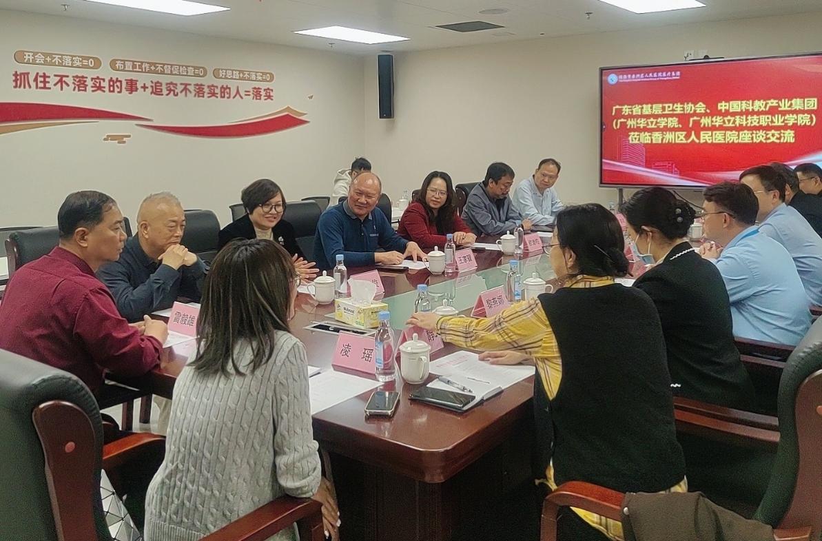 为深化产教融合,推动职业教育高质量发展,2025年12月10日,广州华立科技职业学院马俊常务副校长、广东省基层卫生协会王家骥会长、广州华立学院欧洁梅副校长、健康学院雷毅雄院长、中国科教产业集团彭梅生投资总监、凌瑶董事长秘书等一行领导,赴珠海市香洲区人民医院开展教学调研和访企拓岗活动,旨在共同探索职业教育与医药卫生行业协同育人的新机制、新路径。