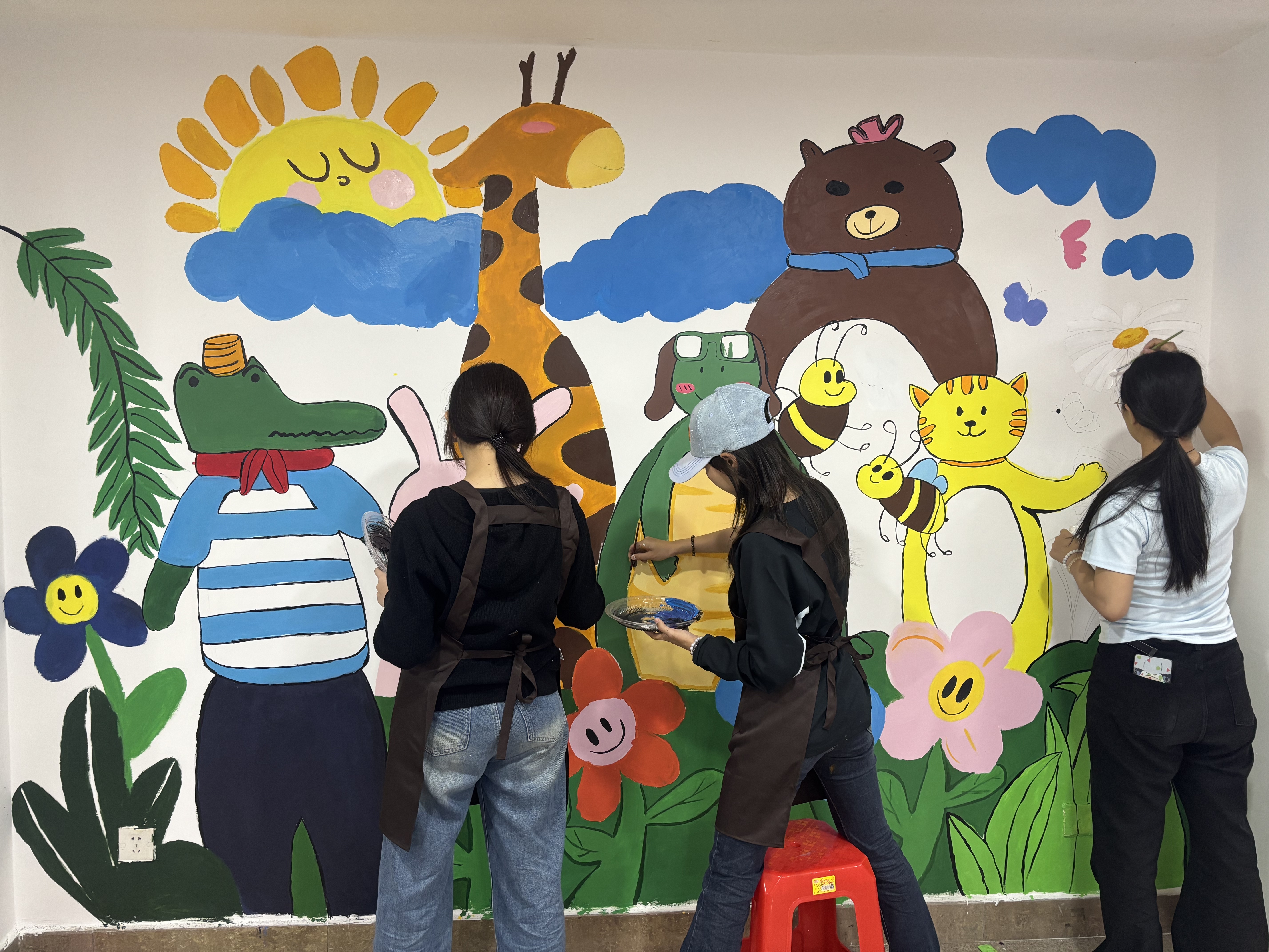 学生墙绘过程