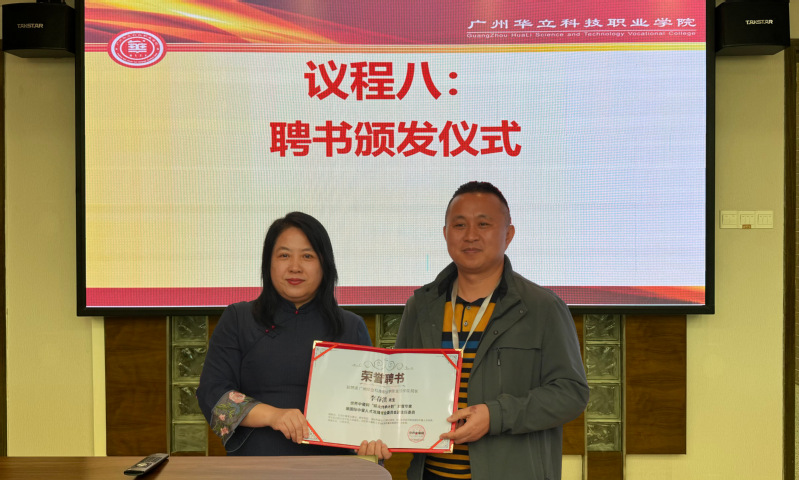 在随后的交流洽谈环节,双方代表围绕人才培养、课程共建、国际赛事、实训基地建设、数字平台应用等议题展开深入探讨。现场气氛热烈,合作意向明确,为后续项目落地奠定了坚实基础。在充分交流的基础上,双方举行了隆重的聘书颁发仪式。在全体与会人员的见证下,世界中餐网主编高子新女士代表平台,为广州华立科技职业学院常务副校长马俊、生活学院院长李春洪颁发聘书。随后,双方代表共同签署合作协议,标志着校网合作迈入实质性阶段。