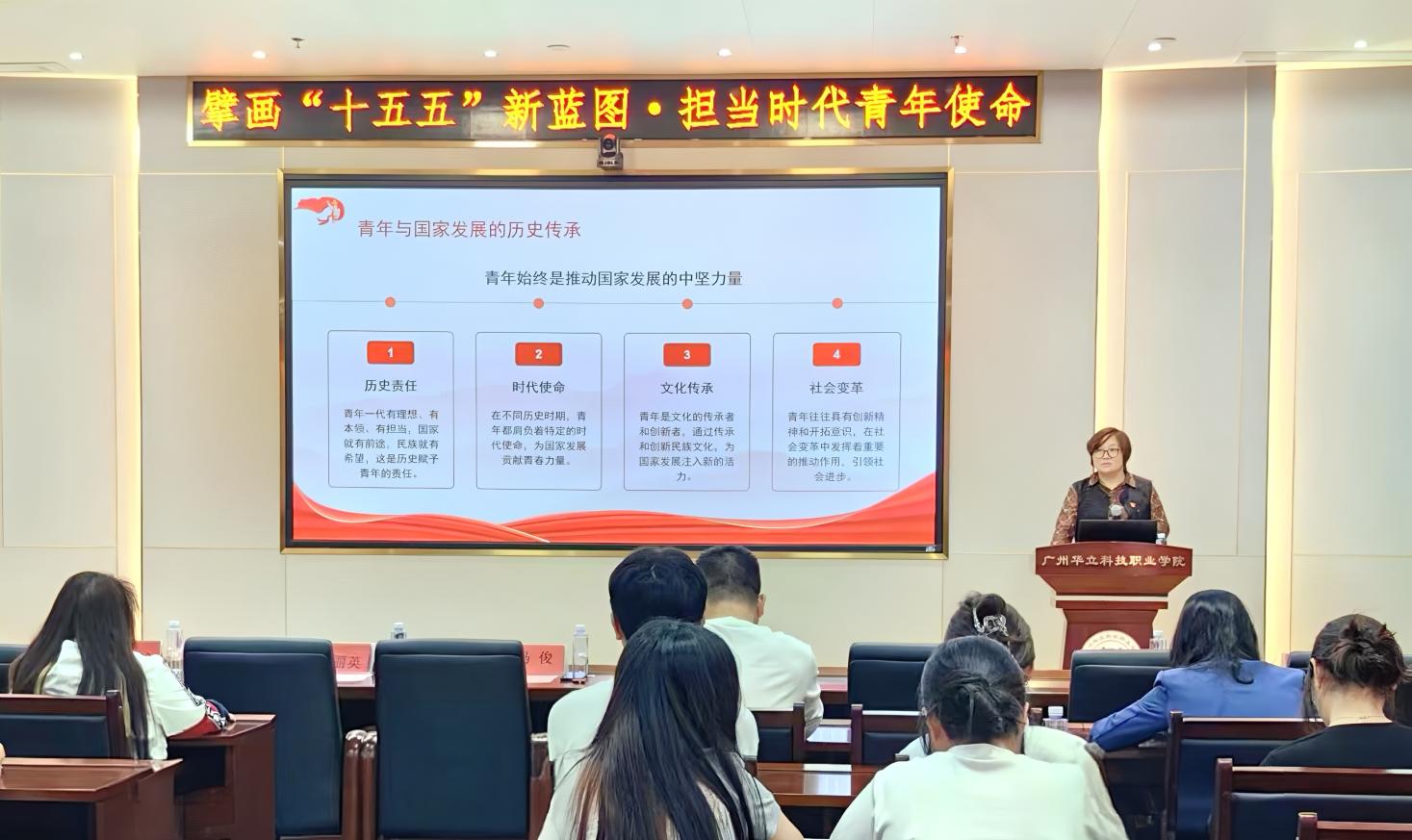 为引导青年学子读懂国家发展大势,找准职业定位,提振学习成才的激情和动力,以实干担当奔赴新征程,3月18日,在图书馆104会议室,学校常务副校长马俊教授以“擘画‘十五五’新蓝图·担当时代青年使命”为主题,为艺术与传媒学院师生带来一堂有深度、有温度、有力度的思政第一课,学院党总支书记陈改梅、院长朱君、党总支专职副书记刘嘉怡参加听课。学生代表齐聚课堂,认真聆听、深入思考,现场氛围庄重而热烈。