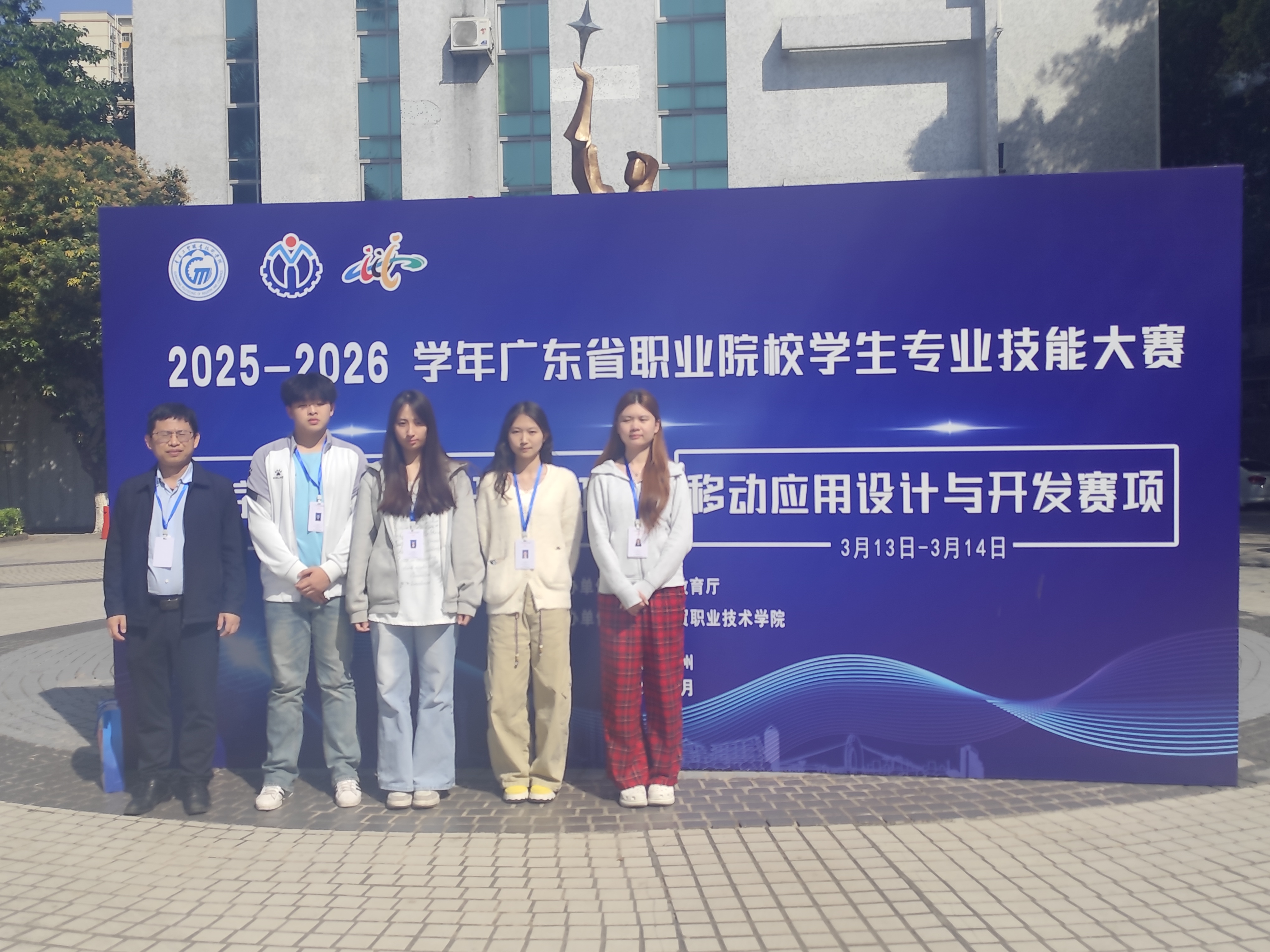 3月13日至14日,广东省职业院校学生技能大赛2025-2026年度移动应用设计与开发赛项在广东工贸职业技术学院举办。此次大赛全省66所高职院校代表队参赛,经过一天的激烈角逐,计算机信息工程学院彭依琳、魏淙正、刘奕美、黄嘉琪组成的参赛队,在李鹏、王建华、闵小翠老师的悉心指导下,以全省66支赛队排名第11名的优异成绩荣获省赛二等奖,为学校争得了荣誉。
