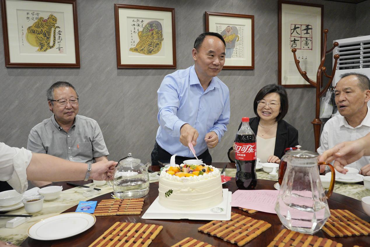 廖校长的发言朴实真挚,句句落在教职工的心坎上,现场掌声不断。随后,在欢声笑语中,校领导与寿星们一同切分蛋糕,大家围坐在一起,畅谈工作与生活,共同许下美好的心愿。