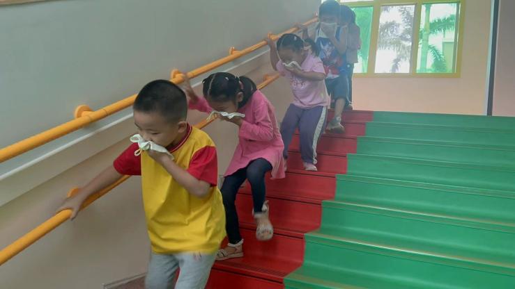 为了提高幼儿园教职员工的消防安全意识和应急处理能力。11月9日下午,保卫处陈胜军处长带领消防专员黎鸿健与“蓝焰荔志”消防宣传队员在幼儿园开展消防安全演练。此次活动得到了学校领导的的大力支持和指导,同时也获得了学生家长们的高度关注和积极配合。当天下午,伴随着急促的消防警报声,孩子们在老师和“蓝焰荔志”消防宣传队员的引导下,用湿毛巾捂住口鼻,低头弯腰迅速离开了教室,按照预定的疏散路线,安全有序地撤离到学校的操场上。整个疏散过程仅用了2分46秒的时间,演练活动取得了圆满成功。
